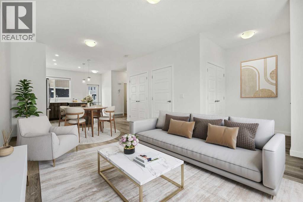 Welcome to #205 in the Red Embers Point complex, located in the community of Redstone.Upon arrival, you will notice its convenient placement within the complex, which will allow for ease of entry and exit. Day to day tasks such as bringing groceries and family household items indoors will be efficient, with the parking stall mere steps in front of the home. The main floor flows from living room, dining room, to kitchen, allowing you to remain part of the action while entertaining family and friends. Washing dishes will be a pleasant experience as you bask in the morning sun with the large window above the sink. Enjoy summer barbecues on your back deck overlooking the shared green space, and receive a respite from the heat as the afternoon sun moves to the west. A pantry, two-piece bath, and access to the basement round out the main level. Ascending to the second floor, you’ll observe the continuation of the thoughtful floorplan. The primary bedroom includes a walk-in closet and for those who enjoy their privacy, a three-piece ensuite naturally illuminated with a bright window. Laundry days will be a breeze as the stacked washer and dryer are conveniently located on the same level. An alcove for a desk or additional storage, a linen closet, a four-piece bathroom, and two good sized bedrooms complete the upper level. Descending to the basement, you’ll note that while it is undeveloped, it is a wide space, and is open to the possibilities of whatever your family requires: an entertainer’s haven, gym, office, or play space. The Red Embers Point complex is located off of Stoney Trail, allowing for ease of access to any quadrant in the city. Local amenities include a pharmacy, dentist, grocery stores, schools, and green spaces. Redstone is a growing community, and is of great value for those looking to purchase their first home or raise a family. (id:6289)