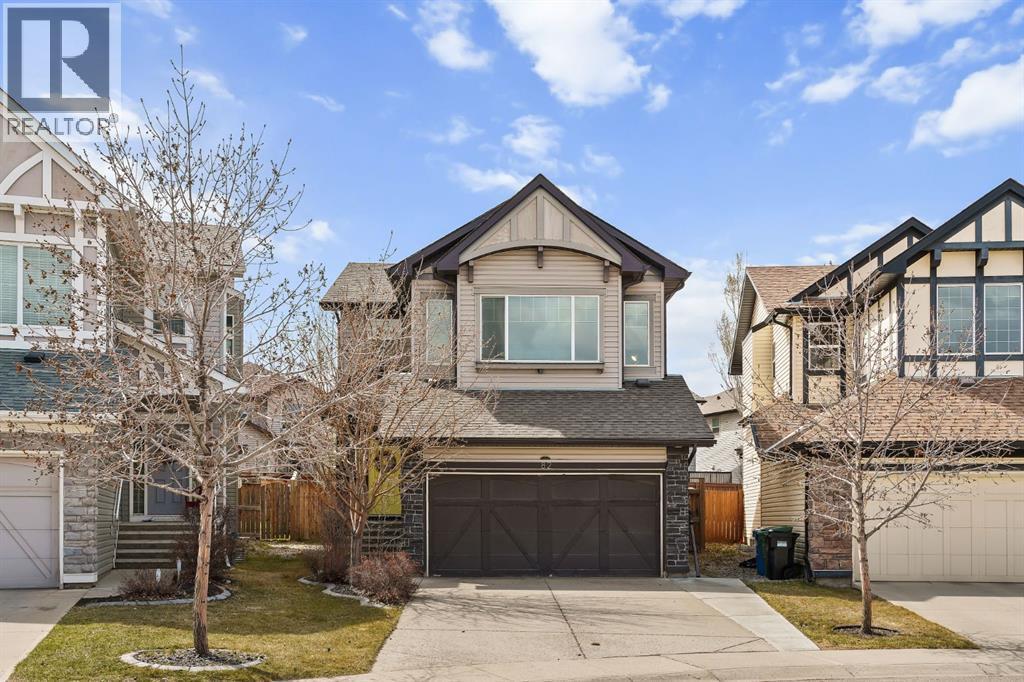Welcome to this beautifully appointed, fully developed home offering over 3,000 sq. ft. of refined living space, ideally situated on a massive pie-shaped lot just steps from lush green space and the picturesque pond. Perfectly nestled between an elementary and middle school, this property is a dream for growing families seeking comfort, space, and convenience. Step inside to discover a thoughtfully designed main floor featuring 9-ft ceilings, rich hardwood floors and a private front den ideal for working from home. The cozy living room centers around a striking stone gas fireplace, perfect for relaxing evenings. A formal dining room with soaring ceilings and wall-to-wall windows bathes the space in natural light, creating a stunning setting for entertaining. The chef’s kitchen is as functional as it is stylish, boasting granite countertops, stainless steel appliances, a corner pantry, extended-height cabinetry and a large central island complete with a built-in wine rack. A main floor laundry room with newer washer and dryer adds everyday ease. Upstairs, you’ll find newer carpeting with upgraded underlay, four spacious bedrooms, and a luxurious primary retreat featuring a second gas fireplace, a 5-piece ensuite with dual sinks, a walk-in closet, and spa-inspired finishes. An additional 4-piece bathroom completes this level. The fully finished basement offers versatile living with a large recreation room, full bathroom, bonus den, and room to add a future 5th bedroom—ideal for guests or extended family. Step into your private backyard oasis with a pergola-covered deck, children’s playset, and low-maintenance landscaping bordered by mature privacy trees—an ideal spot for outdoor enjoyment. This home is loaded with upgrades, including air conditioning, a brand new furnace, brand new premium tankless water heater and water softener, built-in speakers as well as a Nest thermostat and doorbell camera. The roof was also updated in 2020. With unmatched location, generous s pace and premium features throughout, this is a rare opportunity to own a truly exceptional home in one of Calgary’s most family-friendly communities. (id:6289)