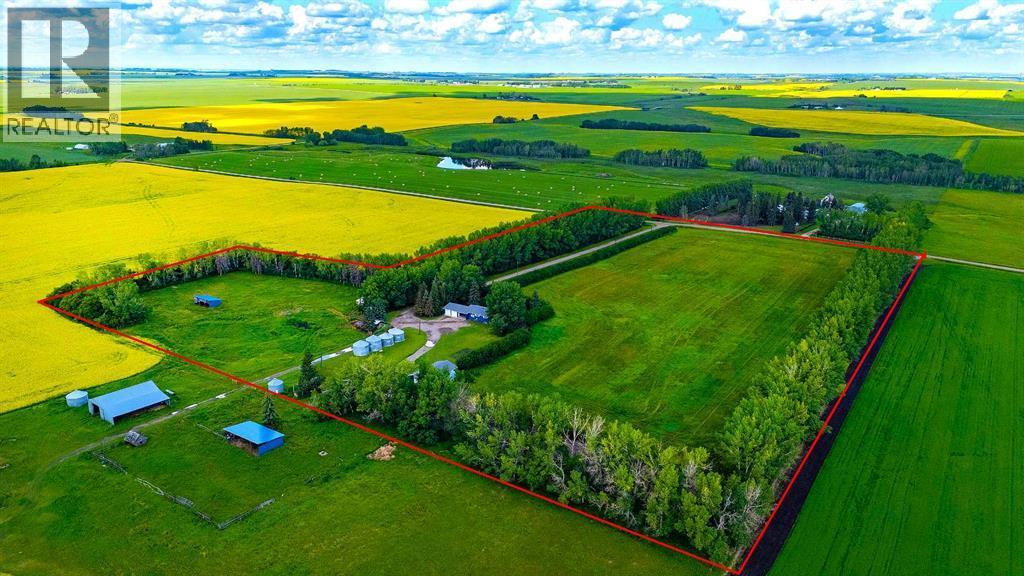 AMAZING OPPORTUNITY beautifully situated an easy half mile out of Crossfield. Just minutes to Airdrie and 20 minutes to Calgary International Airport, this is a commuter’s dream! AG ZONING offer lots of flexibility in permitted uses for the property including being able to build an secondary dwelling (see supplements) ! This beautifully treed property is situated on 20 acres and the opportunities are endless. The home is a recently updated 1,450 +/- bungalow that offers three bedrooms above grade and two below in the Mother -in law suite. Upon entering you are greeted by a mudroom with laundry hookup for the main floor and a sink. The kitchen has new counter tops and lots of newly painted cabinets! A large eating area finishes the space with a door leading to the rear deck that is surrounded by trees for added privacy. Around the corner you will find an oversized living room that is highlighted by a big window for natural light. Down the hall you will find a 4 pce updated washroom and 3 bedrooms - one of which is the primary. The lower level is developed into a 2-bedroom illegal suite with a full kitchen and separate laundry. The larger of the two lower level bedrooms could be used as an additional family room, or a larger primary for the suite as it does have a closet. Outside there is an oversized detached garage with a single carport bay between the garage and house. The property is fenced and cross fenced. The 30x50 mechanics shop is heated and dry walled with a hoist, paint booth, and tool shed. There is an underground root cellar to hold your vegetables year-round, an auto-water to the west of the yard, and a meat cooler that could be up and running with a little electrical work. Gorgeous trees surround the yard including apple trees ! This property really must be seen to be appreciated! Do not miss out on this opportunity, call today to book your appointment. Property taxes listed are subject to change as the subdivision has just been created. *Som e photos virtually staged* (id:6289)
