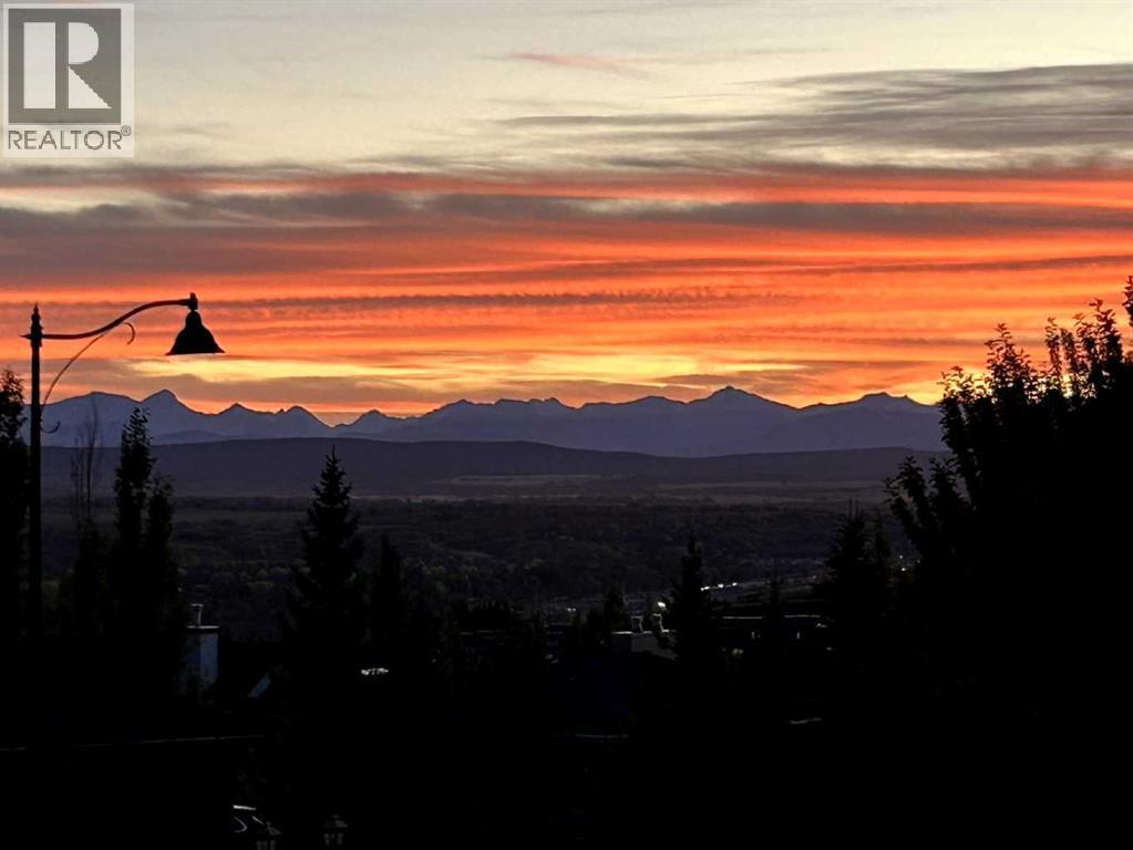 Experience refined luxury and sophisticated design in this stunning walkout villa in exclusive Elveden Court! Magnificent Rocky Mountain and Elbow River Valley views from upgraded indoor living space and surprisingly private outdoor living areas. MAIN: Step out to a peaceful, private, glass rail deck with gas fireplace, gas BBQ, and power steel louvre pergola for sun or shade. Perfect for outdoor dining or enjoying serene sunsets with friends and family. Step in to towering 18’ vaulted ceilings, floor to ceiling windows and numerous skylights spill natural light into generous size living spaces all day. Multiple eye-catching interior architectural ceiling features even in the foyer and powder room, ideally accented by the artful collection of upmarket chandeliers & light fixtures. Substantial and impressive floor-to-ceiling brick fireplace in the vaulted living room. Large dining area and a chef’s kitchen with premium appliances, dual wall ovens, gas cooktop with wall faucet, roomy prep/breakfast island. Note the custom hardware extras to enhance function/storage. Discreetly located office with built-ins and bright window. Primary bedroom has amazing sunset views, luxurious en suite with skylights and walk-in closet. Laundry room with ample storage and mud room with easy garage access (room for lifts!) and side exit to a fenced dog run. WALK OUT: In floor heating, large rec room with 3rd fireplace connected to peaceful covered patio (gas) and fenced grass area. 2 large bedrooms, plus dedicated gym/exercise room with rubber floors, glass wall feature wine room, wet bar and extra storage. This home was one of the first homes built in the complex, chosen for its views, corner lot privacy and the unique opportunity to work with designer Paul Lavoie to customize design choices more than the subsequent builds in the complex. Extensive and expensive upgrades plus the amazing views help make this great home truly exceptional! Conveniently located close to Aspen Landing, Westhills, Westside Recreation Centre, walking/bike paths, multiple golf courses, major commuting routes and 69th Street LRT. Click 3D for interactive floor plan. Open House - Saturday October 4th, 2-4 P.M. (id:6289)