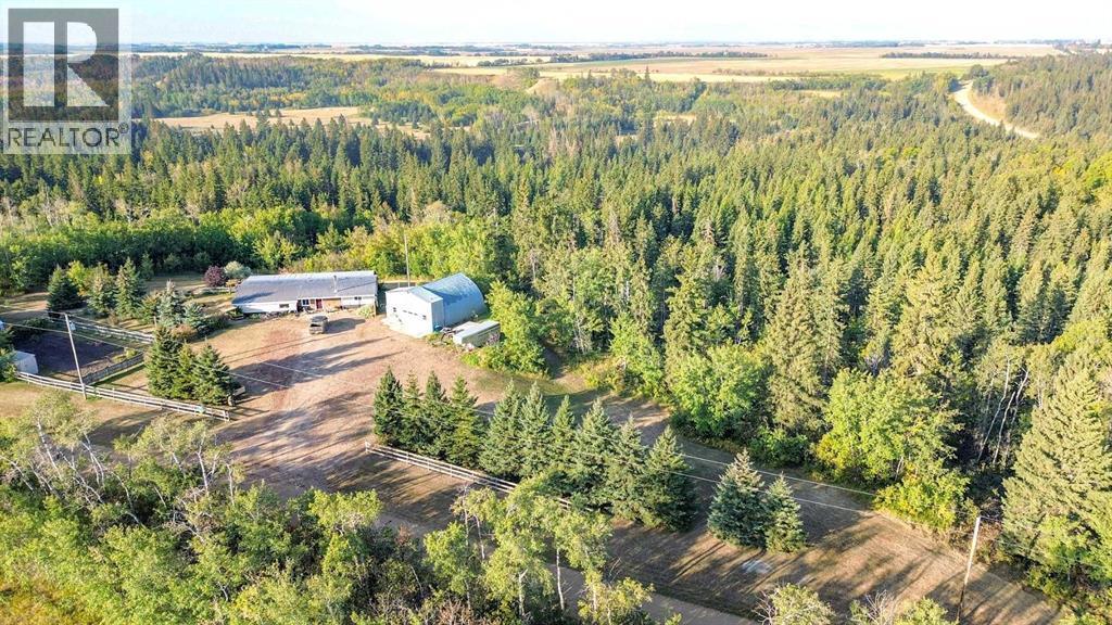 Discover the perfect balance of rustic charm and modern comfort in this beautifully maintained acreage, nestled on 4 scenic acres right at the edge of the coulee. Ideal for families or anyone seeking a quieter lifestyle, this property offers room to grow, relax, and enjoy nature’s beauty just outside your door. Step inside and be welcomed by the warmth of pine tongue-and-groove walls and ceilings throughout much of the home. A spacious entrance with a newer wood stove sets the tone, leading into a large dining room and adjoining living room—perfect for gathering with family and friends. Just a couple of steps up, the kitchen features an island and garden door access to a massive covered deck that spans the entire west side of the home, providing sweeping views of the coulee beyond. There are three bedrooms, one with patio doors opening directly onto the deck, providing a serene outlook. The bathroom is complete with a jetted tub, corner shower, custom vanity, laundry, and patio doors to let in calming views while you unwind. Recent interior upgrades include a newer hot water tank, furnace fan, toilet, washing machine, and updated flooring in the entrance and two bedrooms. Exterior updates include newer siding, septic system, re-insulated under the home, and newer gutters. Outdoors, enjoy the convenience of the 30’ x 35’ heated shop with an overhead door and shelving, plus additional sheds and a small greenhouse. The yard is thoughtfully landscaped with a garden spot, wood fencing, and a lovely lane-way lined with a row of spruce trees that welcome you home. The landscape beyond offers a diverse mix of trees, providing a natural, park-like setting. This property is more than just a home—it is a lifestyle of peace, space, and scenic beauty. (id:6289)