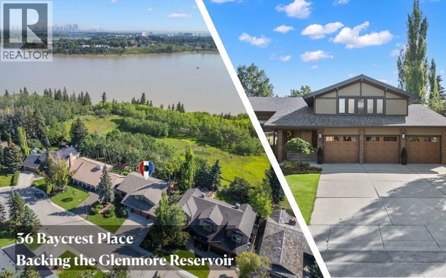 If you ask a prospective homeowner what they want in their next home, answers may vary, but one thing everyone agrees on is the desire for a home where quality, care, & attention to detail can be trusted & will endure. You’ve found that home here. Presenting 36 Baycrest Place, a truly executive, renovated home BACKING THE GLENMORE RESERVOIR on one of Bayview’s quietest, most desirable streets. This home has been proudly maintained by these owners for 28 years, & now it’s time for a new family to create their own memories at this spectacular property. The curb appeal is impressive. A triple garage, custom front door & a sneak peek at the wonderful gardens that grace the entire property. The vaulted ceiling when you enter is one of three signature interior features that the home showcases. Grand in nature, this soaring ceiling makes this 3100+ sq.ft home feel much larger. The second, is one of the most impressive primary suites you will find, which truly defines estate caliber. A cozy sitting area by the fireplace, an elegant antique iron balcony, custom built, dual walk-in closets, & a luxurious ensuite with distinctive back-to-back vanity, marble counters, & a beautifully designed bath space. A total of 686 sq.ft of luxury. 4 upper bedrooms give you plenty of flexibility for a large family or a home office. The third signature feature is the culinary kitchen that embodies warmth, with natural cherry cabinets, Sub-Zero, Thermador, + Gaggenau appliances, designer shelving, & a spacious pantry. The kitchen has an enduring quality & is designed for both beauty, durability with real wood cabinets, & function. Spacious principal rooms flow out from here & are ideal for large or growing families, enhanced by sophisticated millwork, elegant railings & rich, Cumaru Brazilian teak hardwood. Every detail has been thoughtfully considered in this renovation - a true reflection of enduring quality. The basement checks every box, & adds an extra 1465 Sq.ft. bringing the total deve loped space to 4570 Sq.ft. Living area, media room, 5th bedroom, full bath, office & ample storage. The exterior is as impressive as the home. The seamless access to the reservoir is ideal as you are only footsteps to the water & pathway system. But the surrounding mature greenery, gardens & wooded area protects the yard & provides incredible privacy & quiet seclusion. Enjoy the quiet nature of the yard in one moment, & a moment later you can seek recreation & nature out your back gate. The yard offers something for every gardener. A mix of evergreens, ornamental grasses, hydrangeas, & colorful perennials. Superb. Ample patio space to entertain & enjoy outdoor meals on. An extraordinary opportunity awaits with this estate quality home, perfectly combining luxury, unmatched privacy, & a setting immersed in natural beauty. An extraordinary opportunity to passed along to your family, from a family who has treasured both the home & the lifestyle it offers.**PLEASE WATCH THE VIDEO** (id:6289)