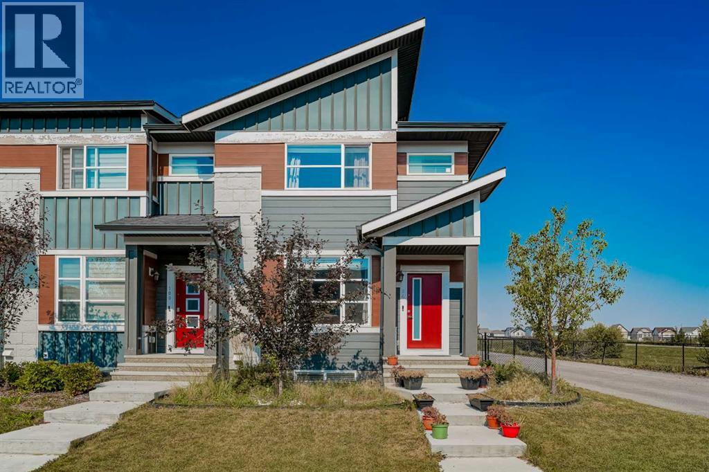 Welcome to 96 Skyview Parade NE—an air-conditioned, end-unit townhome in one of Calgary’s fastest-growing communities. Inside, 9’ ceilings and an open concept make entertaining effortless. The kitchen impresses with stainless steel appliances, white subway tile backsplash, quartz countertops & island, extended cabinetry, a window over the sink, and upgraded laminate flooring. A handy homework/office nook, rear mud room, and a 2-pc powder room complete the main floor.Upstairs offers three generous bedrooms and two full baths, including a comfortable primary suite with 3-pc ensuite and walk-in closet. You’ll love the convenience of the oversized 2nd-floor laundry (washer/dryer included).The builder-finished basement adds real versatility with a big recreation room and wet bar, a fourth bedroom, a full bathroom, and useful storage—great for guests, teens, or game nights.Outside, enjoy the covered front porch, fenced yard, and a double detached garage (with a concrete walkway off the rear deck). Thoughtful touches throughout include modern baseboards/doors/trims, upgraded lighting, and a high-efficiency furnace & hot-water tank.l of this in a walkable location close to parks, pathways, schools, shopping, restaurants, transit, and quick connections via Stoney & Deerfoot—minutes to YYC.Move-in ready, low-maintenance, and high on lifestyle—this is Skyview living done right. (id:6289)