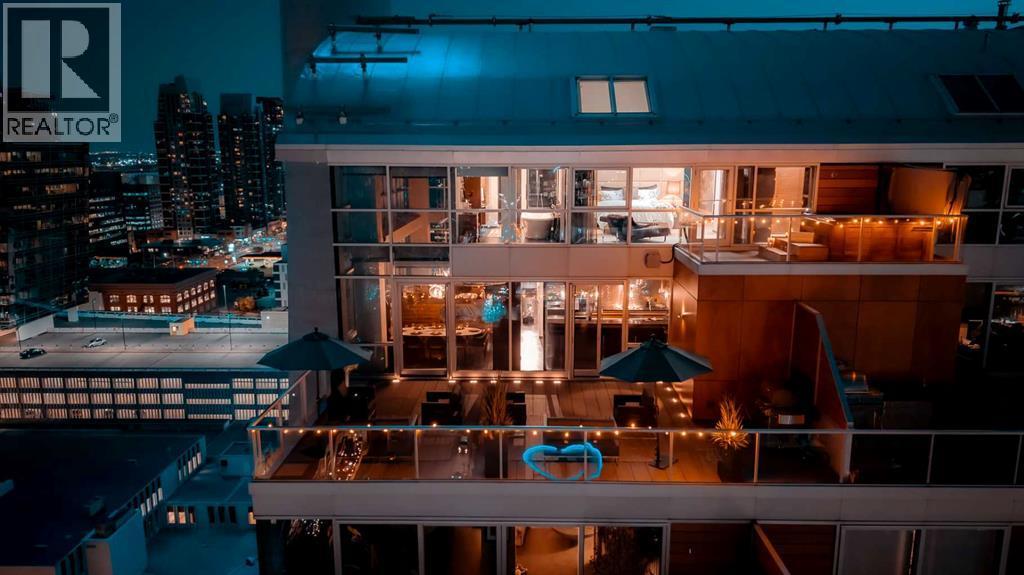 Executive Two-Story Penthouse with Expansive Downtown Views of Calgary and beyond. Showcasing breathtaking North, South and East exposure. Ideally located next to Calgary's Arts Common Building, Glenbow Museum, Calgary Tower, the historical Palliser Hotel, as well as Stephen Avenue Street Mall with its endless restaurants, cafes, shops and lounges. The residence at the Le Germain offers a true elevated lifestyle with world-class amenities such as Concierge, Spa and Gym access, housekeeping services, dry cleaning services, 24/7 building surveillance, pet wash, car wash, maintenance, as well as a hotel account privileges and in-suite dining delivered to your door from the award winning Charcut Restaurant all at your fingertips. With two elevators taking you to the 20th floor, you will enter 2,383. sq.ft. of luxury living with soaring ceilings through out including a vaulted living room, custom fireplace featuring leathered silver wave marble and Zebra Walnut built in cabinetry through out. The chef-inspired kitchen offers Miele appliances including built-in oven, 5 burner gas cook top, warming drawer, microwave/convection oven, range hood, built-in coffee machine, dishwasher and refrigerator. Also featured is the stackable Asko Washer and Dryer and Cavavin by LG wine refrigerator. With black quartz countertops adorning the cooking space as well as the expansive island. With endless built in storage along the West wall including the Concierge closet to receive your deliveries and dry cleaning. Across the hall enjoy the separate laundry room where the custom cabinetry continues, including a convenient laundry chute from the second floor down. Under the stairwell you will find in-suite storage. Expand your living space through the nine-foot doorway leading to a 630 sq.ft. (approx.) terrace, one of three balconies enhancing the skyline views, from the second 39-ft. long (approx.) south facing balcony enjoy spectacular views of the Calgary Tower and beyond. Upstairs, the primary suite offering stunning north facing views, a five-piece ensuite including an oversized shower, dual vanities and soaker tub. Following through with the custom Zebra walnut wood cabinetry into the walk-in closet, with built-in safe and enjoy your private deck with hot tub, overlooking the lively Stephen Avenue Street Mall. The guest suite features south-facing views providing comfort and privacy with its own three-piece ensuite. Across from the guest suite find a coinvent office or study area with a custom desk. Enjoy three separate air conditioning units, one for each level of the suite. Included are two assigned parking stalls, with use of a third and one storage unit. Truly sophisticated urban living at its finest. (id:6289)