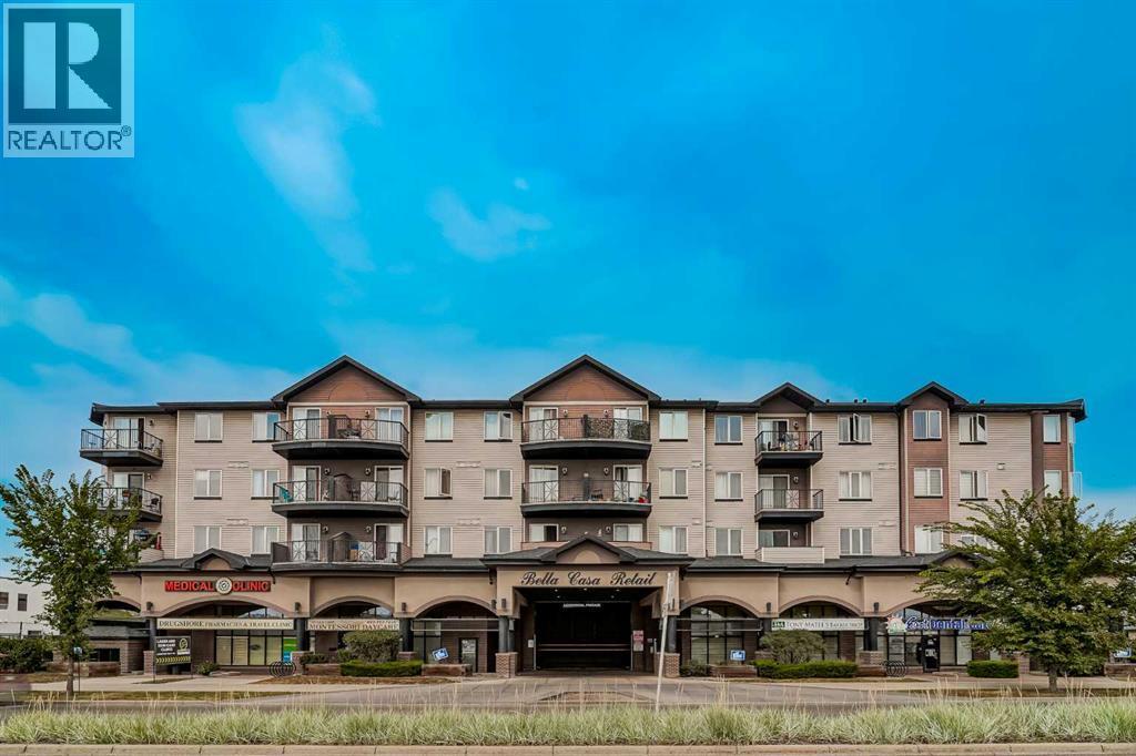 Discover the perfect blend of comfort and convenience in this bright and spacious one-bedroom condo at Bella Casa. Situated on the top floor, this corner unit offers an open layout with 9 ft. ceilings and plenty of natural light. The kitchen features ample cabinetry and a raised breakfast bar, opening into a cozy living room complete with an electric fireplace. Step outside onto your private balcony to enjoy breathtaking views of downtown Calgary and the mountains. The generous primary bedroom includes a walk-through “His & Hers” closet leading to a 4-piece bathroom. This home also comes with titled underground parking, plus visitor and handicapped parking for your guests. Bella Casa residents enjoy access to a central courtyard with a gazebo and BBQ area, perfect for relaxing or entertaining. The building is pet-friendly (with board approval) and ideally located close to shops, restaurants, and transit, with quick access to downtown Calgary. Condo fees conveniently cover all utilities except electricity. Available for immediate possession – don’t miss this opportunity to make Bella Casa your new home. (id:6289)