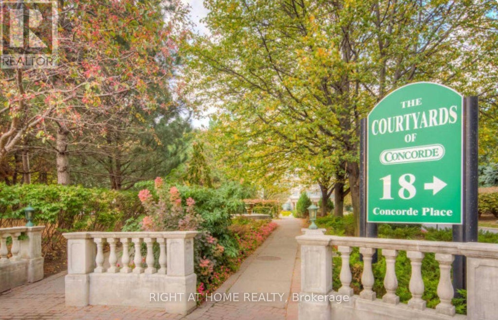 Spacious and well-designed 2+1 bedroom condo in the highly desirable Courtyards of Concorde. Situated at the end of a quiet cul-de-sac, with TTC right at your doorstep, just minutes to the DVP, and a quick commute downtown. The upcoming Eglinton Crosstown LRT will add even more convenience.This move-in ready unit features large principal rooms, hardwood floors, recently paint throughout, and a coveted split-bedroom layout for optimal privacy. Enjoy sunny views of the garden and front of building from the Juliette balcony. The second bedroom includes a built-in vanity/office space that can easily be converted back to a double closet. A separate laundry room off the kitchen doubles as pantry/storage. Owned parking and locker included.Building amenities rival a 5-star resort: indoor saltwater pool and whirlpool, gym, billiards and card rooms, workshop, guest suite, elegant party room with full kitchen and dance floor, gas fireplace, and terrace. Additional features include a library, tennis court, car wash bay, fenced dog run, garden plots, potting room, on-site superintendent, property manager, and 24-hour concierge/security. Residents enjoy a vibrant community with an active social committee hosting cultural events, dinners, annual BBQs, aqua-fit, stretch and exercise classes, book clubs, movie nights, and more. Walk to groceries, cafés, and the Aga Khan Cultural Centre. Minutes to Shops at Don Mills with restaurants, VIP theatre, and boutiques. Quick access to DVP/401 and excellent transit connections. Please not (id:6289)