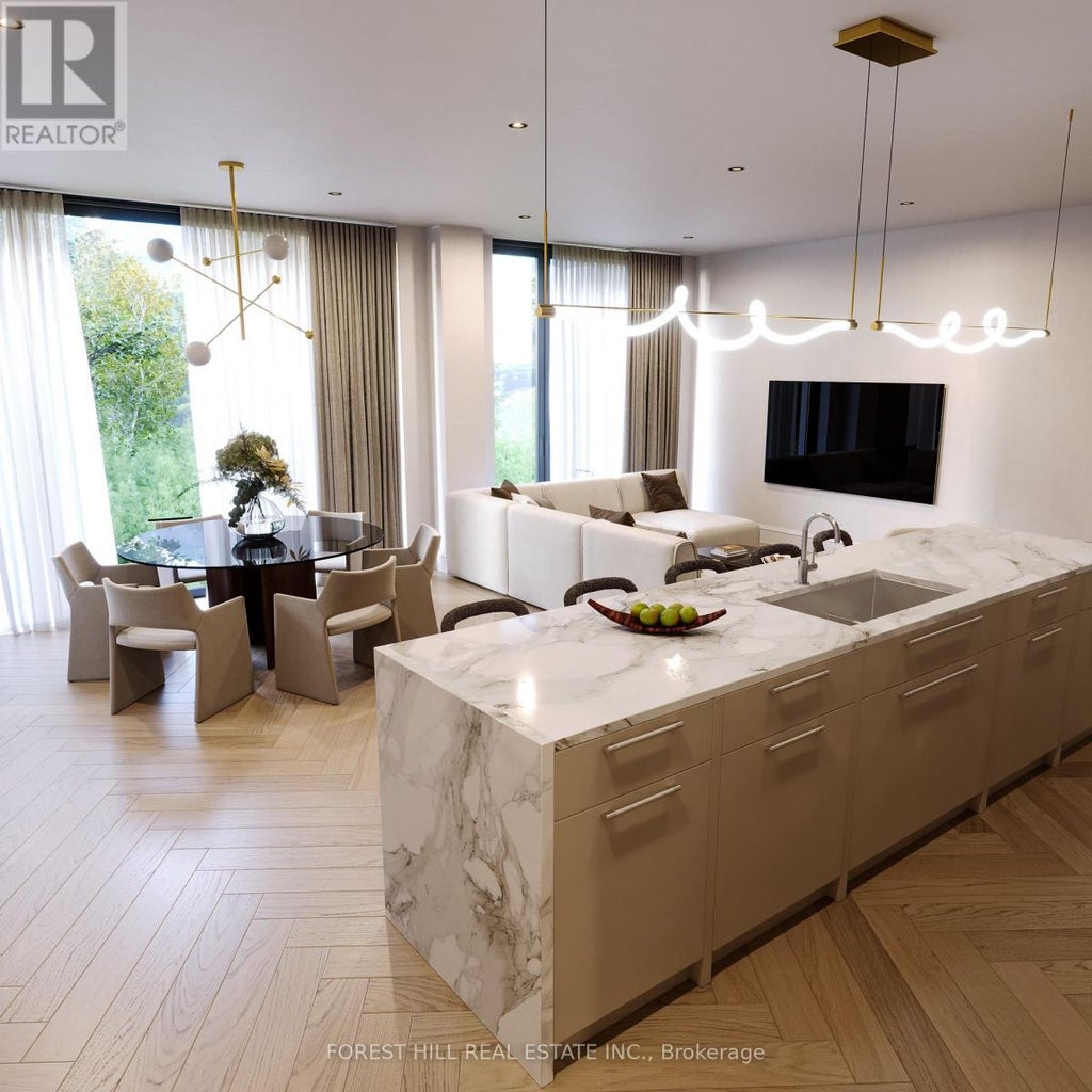 Welcome to The Rhodes, a New York inspired, luxury boutique building perfectly situated where Forest Hill, Cedarvale, and the Upper Village meet. This 1 bedroom + den, 2 bathroom suite offers 1,416 sq.ft. of interior living space plus 111 sq.ft. outdoors, featuring 9 ceilings, direct-to-suite elevator access, and a private foyer for your use only. Designed by Ali Budd Interiors and finished by Blackdoor Development Company, the suite is currently unfinished and can be custom completed alongside the Blackdoor team within 90 days. Standard features include a Gaggenau appliance package and thoughtfully considered, high-end finishes throughout. Enjoy unobstructed west-facing green views, unmatched privacy, and a residence that truly feels like home. Building amenities include white-glove concierge service by The Forest Hill Group, a fitness and mobility centre, rooftop terrace, pet spa, boardroom, and a grand front entrance. Registered and move-in ready, The Rhodes is the only building of its kind in the area an extraordinary opportunity to make it your forever home. (id:6289)