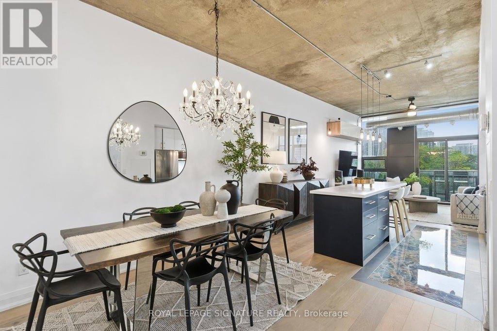 Welcome to this beautiful 1 bedroom + den loft in the highly sought-after Sixty Loft building, ideally located in the heart of King West. This bright and spacious suite offers the perfect blend of modern luxury and urban charm, featuring soaring high ceilings, floor-to-ceiling windows, lovely west-facing views that fill the space with natural light. Beautifully renovated in 2021, the loft showcases exquisite flooring, sleek kitchen cabinetry, stainless steel appliances, modern fixtures, and a custom centre island, perfect for hosting. The open-concept layout is ideal for both relaxing and entertaining, with a stylish kitchen that flows seamlessly into the charming living and dining areas. The spacious primary bedroom offers a peaceful retreat with ample room for a king-sized bed and features a serene, loft-inspired atmosphere. Built-in storage that blends design and function in the chicest way. The luxurious bathroom is designed for ultimate comfort, complete with heated flooring and a jetted bathtub, a rare find in loft living. Enjoy breathtaking sunset views from your private balcony equipped with a gas line hookup for barbecuing. Urban living with a neighborhood feel, parks, patios, and a future Ontario Line station just steps away! (id:6289)