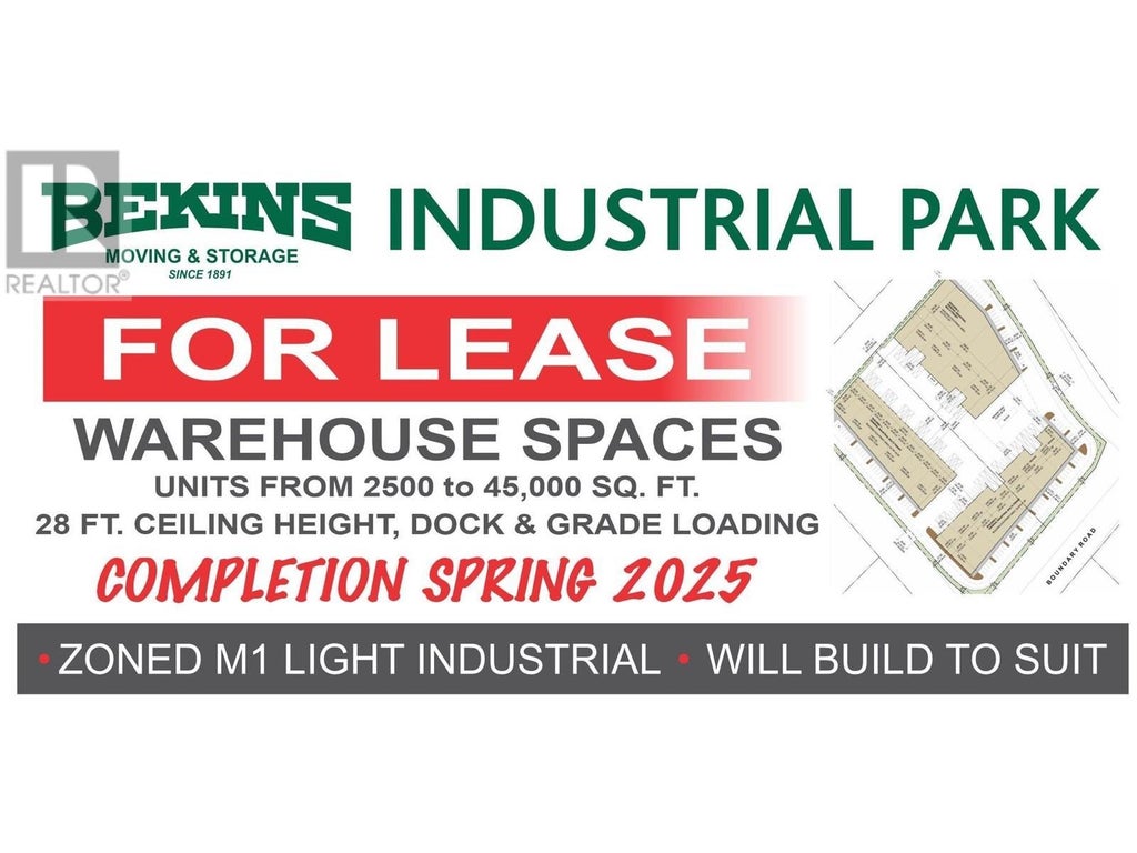 Brand new flexible warehouse building available for lease with an anticipated completion date of 2025 in the newly developed Boundary Road Industrial Park. Multiple flexible units available from 2500 to 10,000+ sq ft. High ceilings, dock and grade doors, ample parking and exterior yard space are just a few of the amenities that will be available within these new warehouse buildings. Reserve your space today for maximum exposure in this exciting new development that the Prince George market desperately needs. (id:6289)