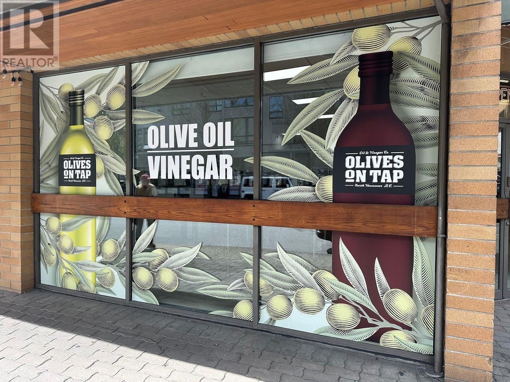 Exclusive Turnkey Retail Opportunity in the Heart of North Vancouver! Don't miss this rare chance to own the only olive oil and balsamic vinegar tasting shop in North and West Vancouver! This 1,543 sq ft street-level storefront offers prime exposure on a high-traffic commuter route with steady pedestrian and vehicle flow. Olives on Tap is an award-winning, well-established tasting bar specializing in premium olive oils, aged balsamic vinegars, and curated culinary gifts. Located in a vibrant, mixed-use neighborhood surrounded by residential homes, schools, fitness centers, and cafés, this bright corner unit features large display windows, stylish signage, ample street parking, and designated private parking spaces. The modern open-concept layout is ideal for tastings, workshops, and private events, with a dedicated prep and storage area in the back. With strong supplier partnerships, a loyal clientele, and an inviting in-store experience, this is a seamless and profitable opportunity for new ownership. (id:6289)