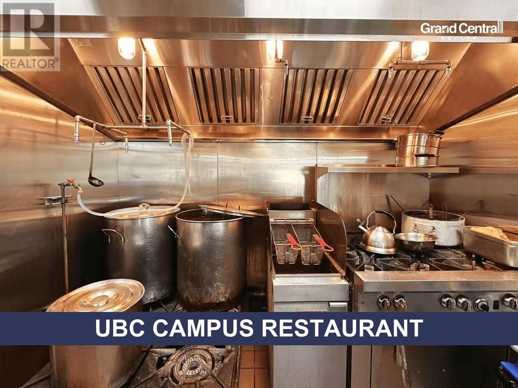 Prime location steps from a supermarket and community center, with high foot traffic and ample customer parking. This 1,184 sq ft unit features two fully equipped 8-foot commercial kitchens, supported by a powerful 400-amp electrical system'ideal for a variety of food concepts. The space also includes a bright, inviting dining area in near-new condition, offering a clean, modern environment ready for immediate operation. Turnkey opportunity in one of UBC's most sought-after commercial hubs!* Please contact the listing agent for more information today! (id:6289)