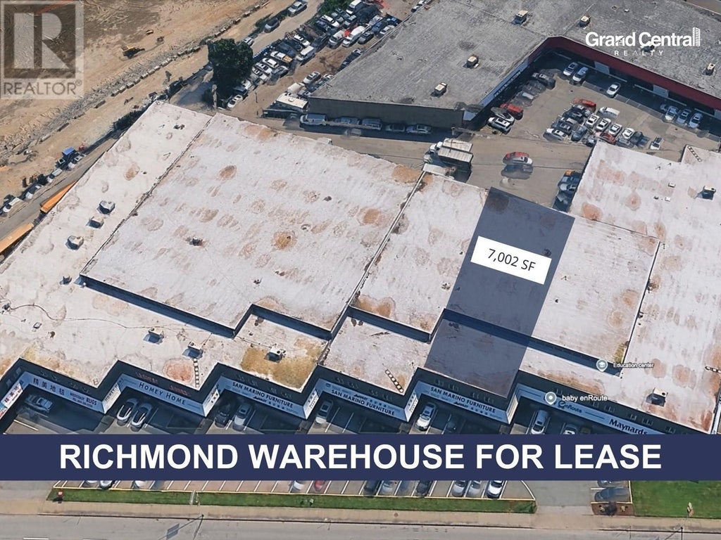 *Showing by appointment only, do not disturb staff. * Rarely available warehouse in the heart of the city center. Leasing this 7,002.49 sq ft warehouse with a 24-foot ceiling, located at 7800 Alderbridge Way, which features light industrial zoning. An exceptional location that combines prime accessibility with a vibrant community. The property benefits from its proximity to major transportation arteries, allowing for a variety of businesses. With easy access to Highways 99 and 91 and well-connected transportation networks, this location provides convenient access to the broader Metro Vancouver area. Furthermore, the surrounding area offers a diverse range of amenities, including shopping centers, restaurants, and recreational facilities, ensuring that employees and visitors have access to everything they need within reach. Zoning IR1 allows for manufacturing, recreation, restaurants, vehicle sales, storage, and more. Please contact us for a private viewing. (id:6289)
