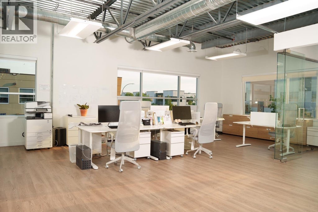 Tastefully renovated 1,532-square-foot second-floor corner premium office space in Riverwood Business Park boasts an array of features: air-conditioning, generous natural light, open workspace areas with glass walls throughout, a fully finished restroom w/shower, a coffee bar with a sink, energy-efficient low-voltage lighting, skylight, updated flooring. Concrete load-rated floors to support a variety of heavy industrial machines as required. Located within the thriving Dominion Triangle, a multi-faceted hub encompassing residential, commercial, retail, and industrial developments with quick access to Hwy. For an investor the Seller can lease back at market rate, or move your own company into this turn key space. Contact for further details. (id:6289)