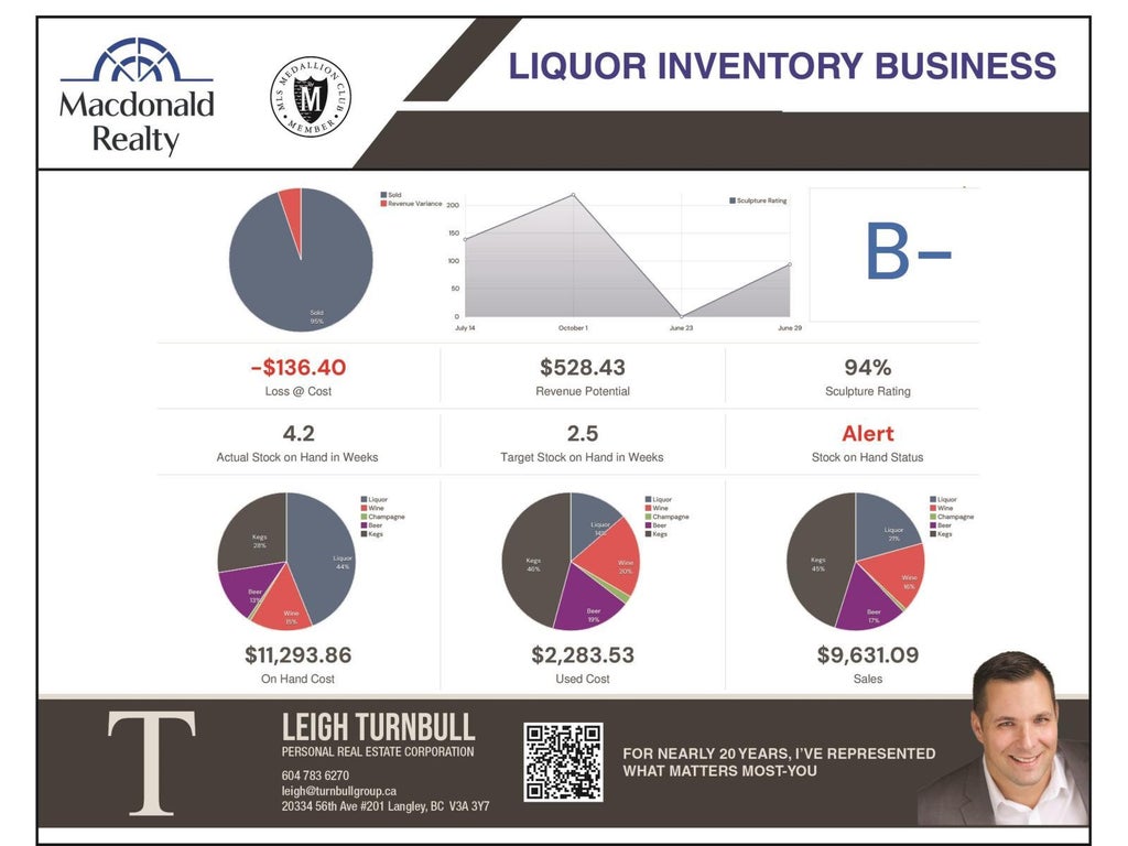 ??For Sale: Profitable Liquor Inventory Business!?? Seize the chance to own a successful liquor inventory business! This is your opportunity to take control of an established operation with a proven track record in efficient stock management. ??Our innovative inventory solutions have streamlined operations, reduced waste, and maximized profits for our clients in the liquor industry.?? Don't miss out on this lucrative opportunity to step into a thriving market! With a loyal customer base and comprehensive systems already in place, you can hit the ground running and elevate your business from day one! If you're ready to make your mark in the liquor industry, learn more about this exciting business opportunity today! (id:6289)