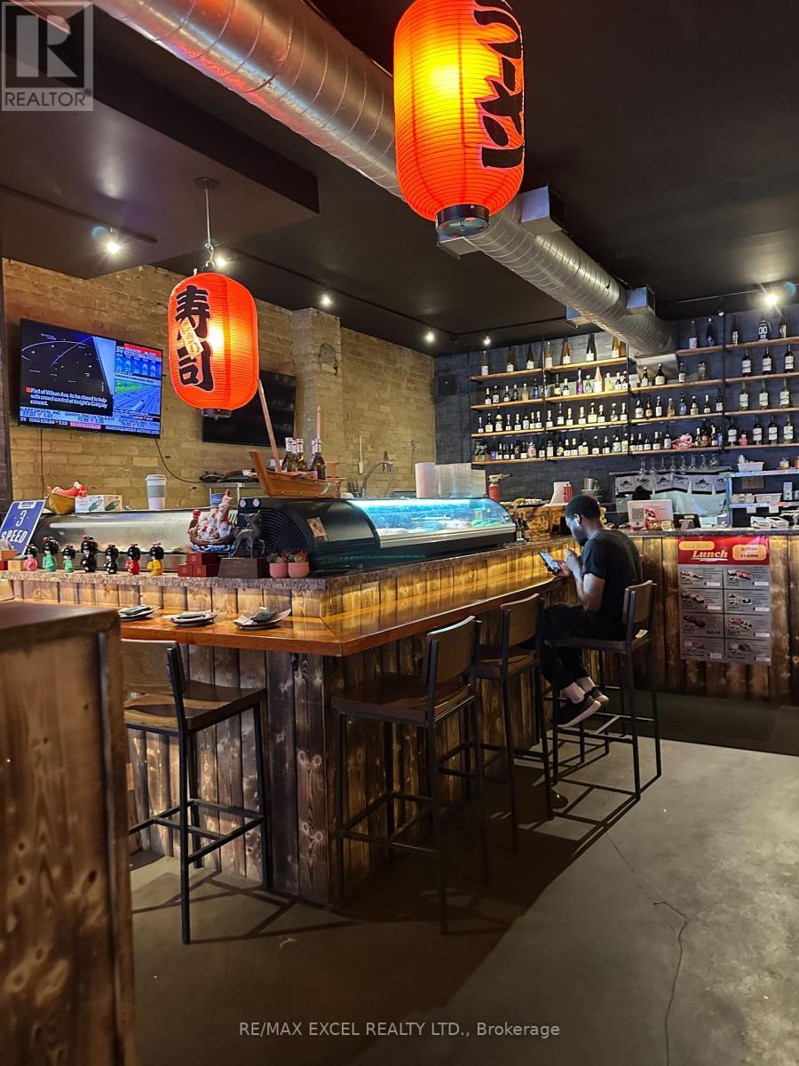 This clean, modern, and functional Japanese sushi restaurant is located on Queen Street East7-year renewal option available.approximately 8 to 9 feet high. The restaurant has a transferable LLBO (Liquor License) with avariety of restaurant concepts.area, and one parking spot is available behind the building. This space is well-suited for ain Toronto. It features an excellent layout with an open kitchen, bar, and an exhaust hood capacity of 50 guests indoors and 20 on the patio. A full basement includes a preparation area, and one parking spot is available behind the building. This space is well-suited for a variety of restaurant concepts. Rent is $9,915/month, including TMI and water. The current lease has 3 years remaining, with a 7-year renewal option available (id:6289)