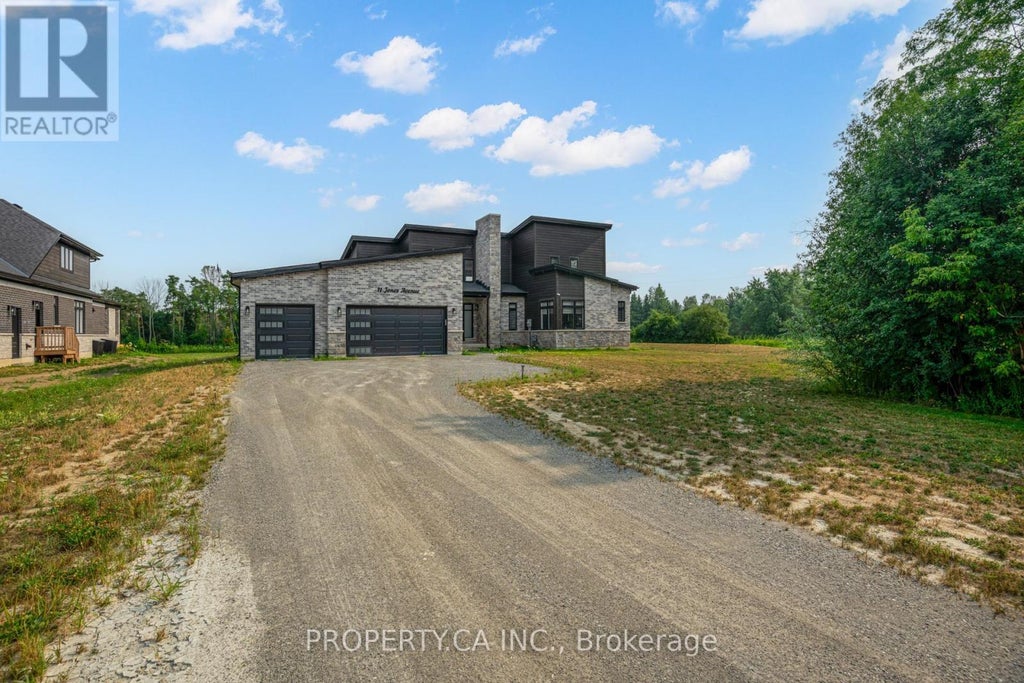Welcome to this ultra-modern, custom-built luxury home set on an impressive nearly 2-acre lot, offering the perfect blend of design, comfort, and future potential. Boasting approx. 3,500 sq ft of beautifully crafted living space, this home features 4 expansive bedrooms, a 3-car garage, and a massive driveway with ample parking. Step inside to find separate living and family rooms, including a grand living area ideal for entertaining. The designer kitchen is a showstopper sleek, modern, and functional, with extra custom storage to meet all your needs. Built with attention to detail and quality, this home offers not only style and space but also incredible investment potential. With a provision to split the lot, you could build a second home while maintaining privacy. Theres also potential for a second driveway from the adjacent street, enhancing both access and value. Located less than a minute from Hwy 401, this property offers unmatched convenience for commuters while maintaining the peace and privacy of estate living. Whether you're looking for a dream home or a smart long-term investment, this one has it all. Don't miss this rare opportunity to own a standout property with luxury finishes, future development potential, and an unbeatable location. (id:6289)