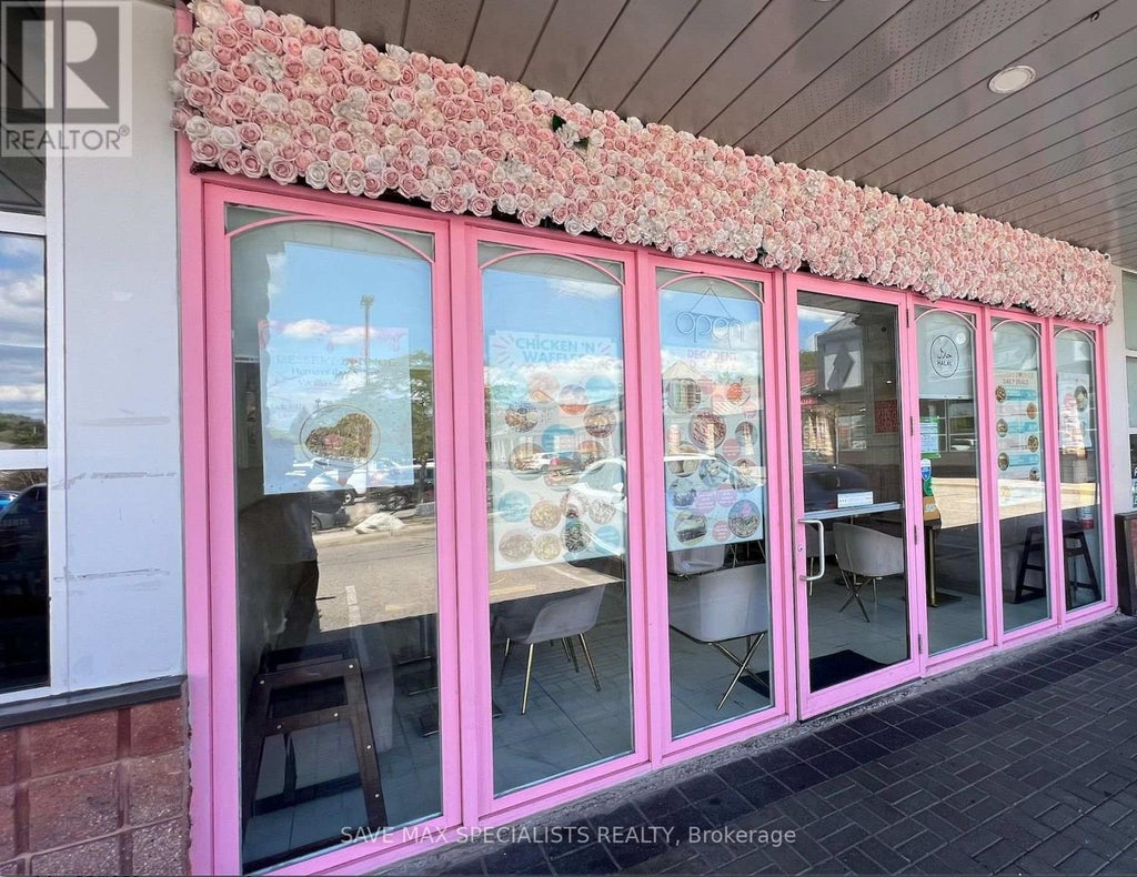 Location! Location! Location! This Exceptional well put together Turn Key Dessert/Cafe Shop. Situated In the Busiest & Desired location of North Brock Plaza At Pickering. High-Visibility Location With Excellent Foot And Vehicle Traffic. Next To Food City Super Market. Lots Of Take-Out & Dine-In Customers From The Neighbourhood. Surrounded By, School a mosque, Devi Mandir, New Homes & Upcoming Condos. 1424 Sq Feet, 40 Seats, 10 Feet Exhaust Hood. 10.5" high ceiling. Rent $6145.49 (TMI, HST & Water Included).1.5 + 5 Lease Term. (id:6289)