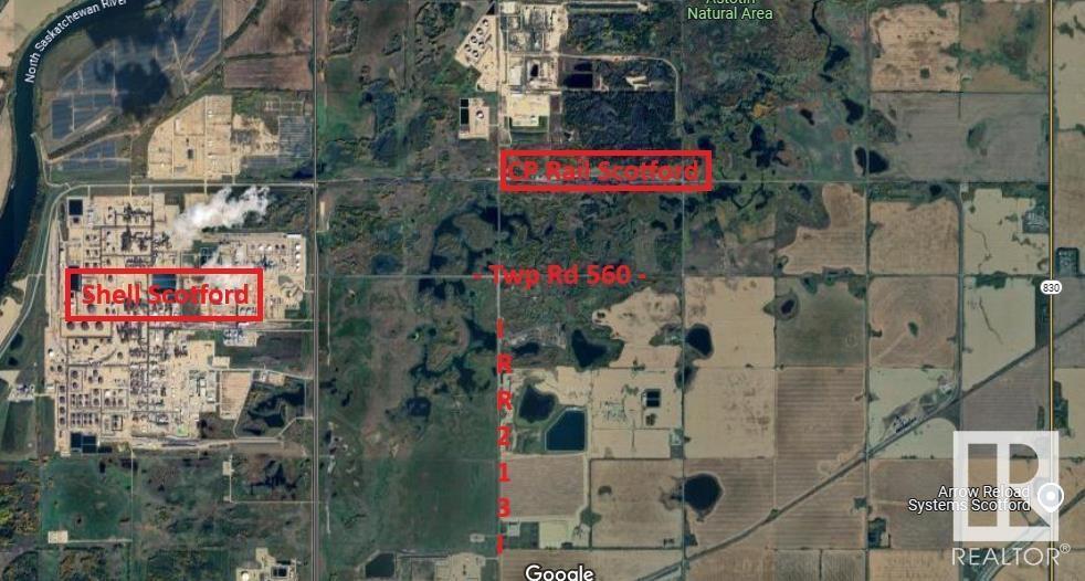 Price lowered to $11,000/acre! Investment or development opportunity. Approximately 150.48 acres of Heavy Industrial bare land. Excellent access to the regions major hauling routes and to the City of Edmonton. Alberta's Industrial Heartland is Canada's Largest Hydrocarbon processing region and one of the world's most attractive location for chemical, petrochemical, oil and gas investment. Backing CP Scotford Rail Yard, potential for rail spur. Close proximity, (1 Mile to the East) to Shell Scotford complex, Bruderheim, Highways 830 and 15. Paved road access. (id:6289)