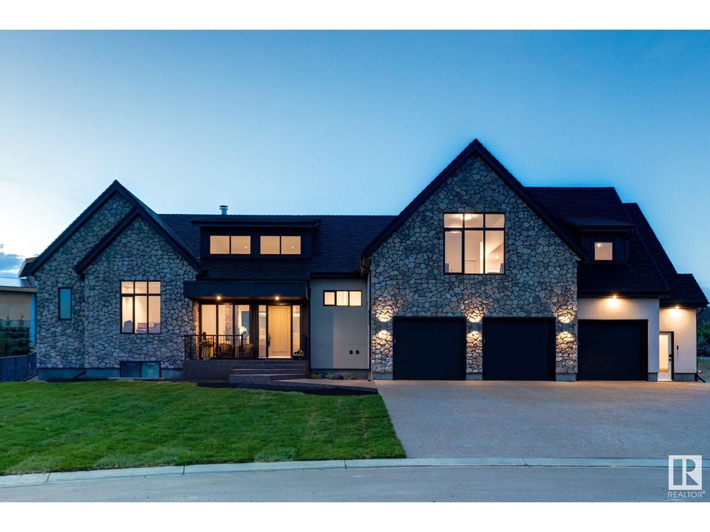 Experience unparalleled luxury at 68 Pinnacle Summit, a masterpiece designed by Lionsgate Builders in Sturgeon County's exclusive Pinnacle Ridge Estates. This newly completed 2024 executive raised bungalow harmonizes timeless sophistication with cutting-edge design. Nestled on a serene 0.50 acre lot in a quiet cul-de-sac, this estate boasts proximity to scenic trails, a playground, and the distinguished Sturgeon Golf Club, while being just minutes from St. Albert’s vibrant amenities. Its striking stone façade, triple-glazed LUX windows, and heated covered patio with dual sliding doors set the tone for an extraordinary lifestyle. With 5 spacious bedrooms all with walk-in closets, 5.5 luxurious baths, soaring 18-foot vaulted living spaces, and gourmet appliances like a Sub-Zero fridge and 6-burner dual-fuel range. The Urban Chalet design shines through white oak cabinetry, a Renaissance Rumford wood-burning fireplace, and spa-like touches throughout. Complete with an AUD suite, gym space & Ev ready garage. (id:6289)