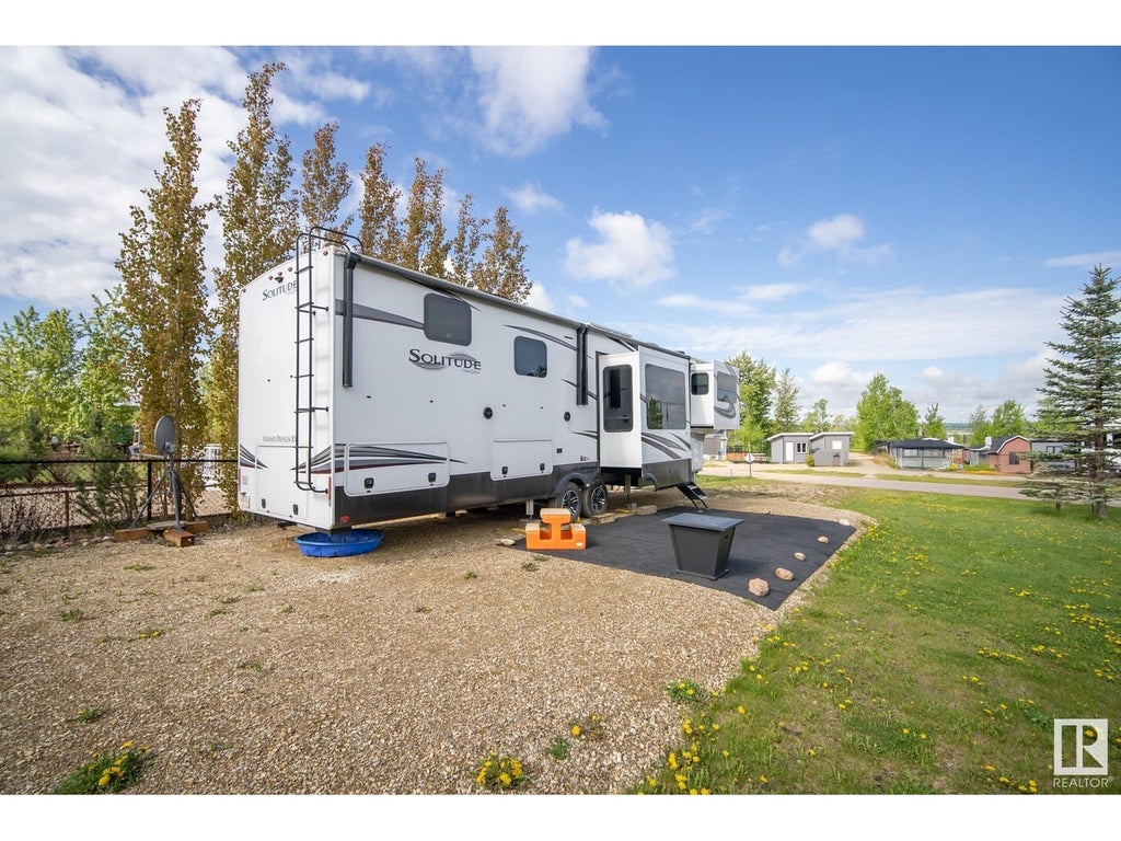 This large 6534 sq.ft titled RV lot has full services which incl. 50 AMP power hook up which is separately metered, CITY WATER hook-up & direct sewer/septic hook up. So many options to further develop this FLAT LOT should one want to and let's not forget it BACKS ONTO A TREED GREENSPACE (currently used for infill) and has VIEWS of the lake from the RV and future deck! There is power to the 2 BEDROOM BUNKHOUSE/shed plus electrical already trenched to your future garage if wanted. Don't let another summer go by looking for a place to get away! Only 45 west of Edmonton, Sunset Shores RV Resort offers 4 seasons of fun & down time! 10 minutes from the Pembina River Float, golf courses, pubs & restaurants all within minutes. Condo fees give you access to all the amenities such as pickleball/tennis courts, basketball, outdoor heated swimming pool, gym, clubhouse, public dock, boat launch & more! The luxury 2022 Solitude Grande Design 5th wheel is also available for an add'l 150K. New memories await! (id:6289)