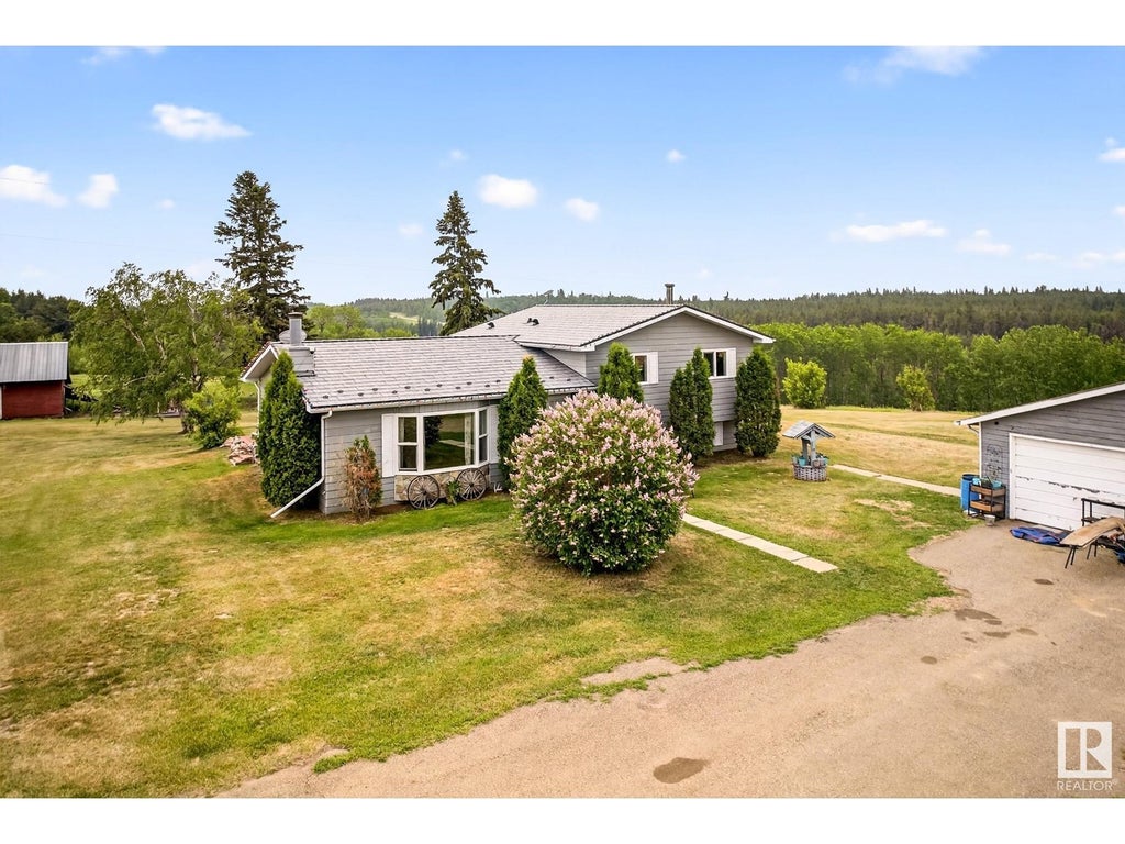 RARE OPPORTUNITY to own a wonderfully upgraded, modern, move-in ready family home on an amazing 40 acre hobby farm, just off Secondary 857 South of Hwy 28 in Smoky Lake County! BEAUTIFUL & PRIVATE SETTING! New septic tank & water conditioner, iron filter & reverse osmosis system (GOOD well) & Hot Water Tank (electric) in 2024. All new windows in 2023, except 2 in basement. NEW in 2023: Vinyl Plank Flooring, Paint & Ceiling, High Efficiency Furnace, Sinks & Toilets, Countertops in Kitchen & Bathrooms, Fridge, Stove, Dishwasher, Washer & Dryer. Roof was replaced in 2018 - aluminum shingles. 8 older farm bldgs include a barn, grain bin, some cool old bldgs & double garage. Huge 40 x 60 metal shop that's a pole shed w/ concrete floor & 100 amp power - 2 OH doors & 1 slider. Partly fenced, ~8 acres in crop, ~ 7 acres in yard / grass. Excellent access to Industrial Heartland (1 hr), Fort McMurray (3.5 hrs), Christina Lake (2.7 hrs), Edmonton/Sherwood Park (1.5 hrs) *COUNTRY LIVING AT ITS FINEST! (id:6289)