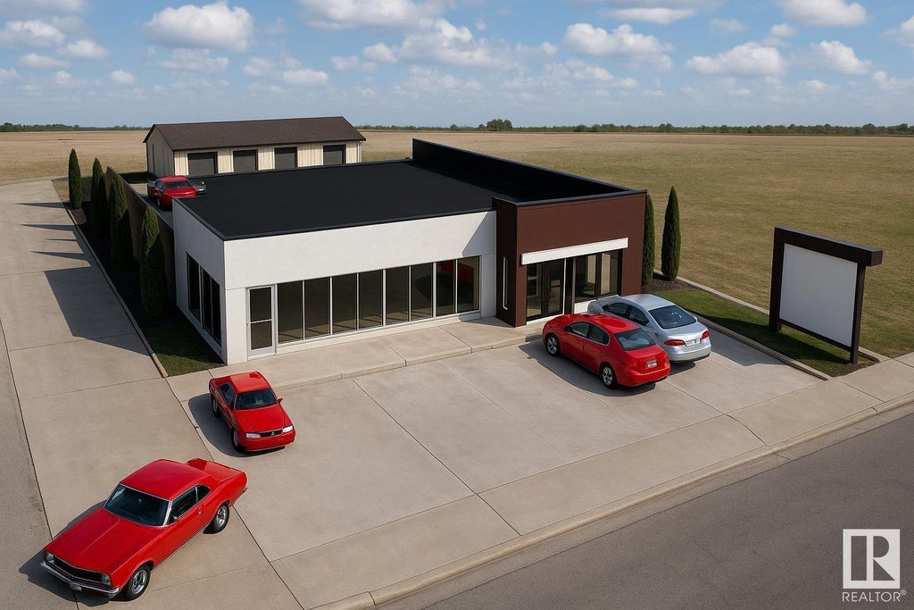 Seize the chance to own half or all of a high-visibility commercial building located directly on Main Street in Morinville, Alberta. This modern property offers exceptional exposure and flexibility, making it ideal for owner-operators, investors, or businesses seeking a strategic location in a growing community. Outstanding Visibility & Access: Situated on a prominent corner lot with dual access points, this property benefits from over 5,265 vehicles passing daily, maximizing your business’s exposure and customer reach. Flexible Ownership Options: Purchase half or the entire building, allowing for shared occupancy, investment partnerships, or multi-tenant use. Modern, Versatile Space: The building features a contemporary façade with large storefront windows, ample natural light, and a welcoming entrance—perfect for retail, office, or service-based businesses. (id:6289)