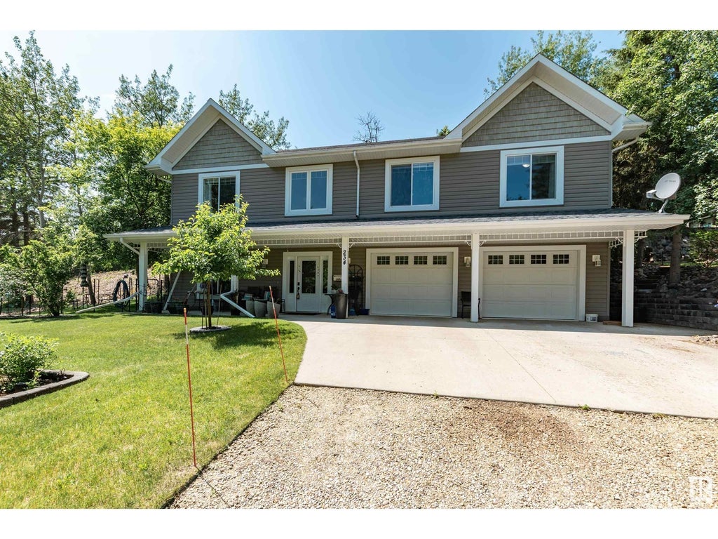 WALKOUT BUNGLAOW IN SOUTH COOKING LAKE! Only steps from the lake and only 15 minutes from Sherwood Park! Enjoy peaceful & cheerful country living in this private treed setting. Built in 2009 offering over 2131 square feet of total living space! Beautiful entry way on the ground level with a massive family room and gas fireplace. The main level features an abundance of natural light, vaulted ceilings & gleaming hardwood floors. Spacious living room plus an open dining area. BEAUTIFUL KITCHEN with maple cabinetry with breakfast bar and stainless steel appliances. The are 3 bedrooms & 3 full bathrooms. The Primary Bedroom features a beautiful 4 piece ensuite and his & hers closets. Lovely deck with covered patio area and beautiful trees for added privacy & serenity. OVERSIZED DOUBLE ATTACHED GARAGE to fit your cars & toys! This home comes with a 2100 gallon cistern and is tied into the municipal sewer system. A/C too! A wonderful place to relax in and call HOME! Visit REALTOR® website for more information. (id:6289)