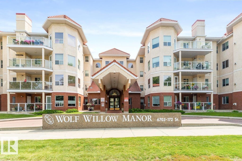 Rare corner unit in Wolf Willow Manor: over 1,300 square feet of bright, updated living space. This 2 bed, 2 bath layout is one of the largest in the building and move-in ready. Features include newer vinyl plank flooring, stainless appliances, microwave hood fan, steam dryer, central A/C, and a gas fireplace. Spacious layout with formal dining, large primary bedroom with 3-piece ensuite, jacuzzi soaker tub, walk-in closet, and in-suite laundry with great storage. Enjoy the private patio with screen door in a quiet corner location. This 55+ secure building offers underground parking with storage, workshop, car wash, three elevators, fitness and games rooms, grand social room, library, and picnic area. Condo fees include water, heat and maintenance of the building. Steps to public transit, doctors office, YMCA, parks, restaurants, and shopping at Callingwood Market. A rare floor plan in a great location. Welcome Home! (id:6289)