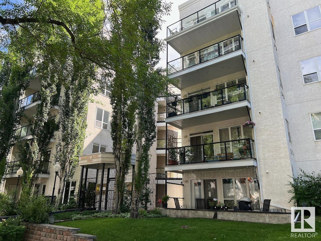 Fantastic corner penthouse, 2 bedroom, 2 bathroom unit at the Grandin Gates with two tandem underground stalls! This spacious and bright condo includes in-suite storage, laundry hookup, and a sunny patio with natural gas. The large living room features a corner gas fireplace and is open to the dining area and kitchen. Plenty of counter space and a breakfast bar make this space ideal for entertaining. Your primary bedroom has a walk-in closet and a 4pc ensuite bathroom. The second bedroom is perfect for guests or a home office and adjoins the main 3pc. bathroom. Close to all downtown amenities including the charming bike paths to the river valley beside the historic trolley line. Easy access to the UofA with the LRT just steps away. Available with a quick possession to enjoy the rest of the summer in style downtown! (id:6289)