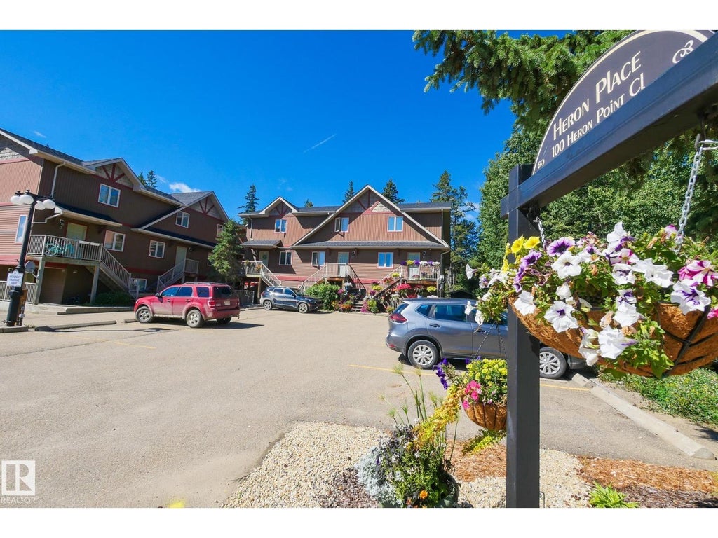 Discover comfort and privacy in this charming 2-bedroom condo in desirable Heron Point, located in the Village at Pigeon Lake. This well-kept unit features brand new carpet and is one of the most private in the complex, backing onto a beautiful treed ravine for serene views year-round. The open-concept layout offers a bright living space, functional kitchen, and a spacious deck—perfect for relaxing or entertaining while enjoying nature right at your doorstep. Includes one powered parking stall for convenience. Ideal for year-round living, a weekend getaway, or a low-maintenance investment in a vibrant lakeside community with shops, dining, and recreation just a short walk away. (id:6289)