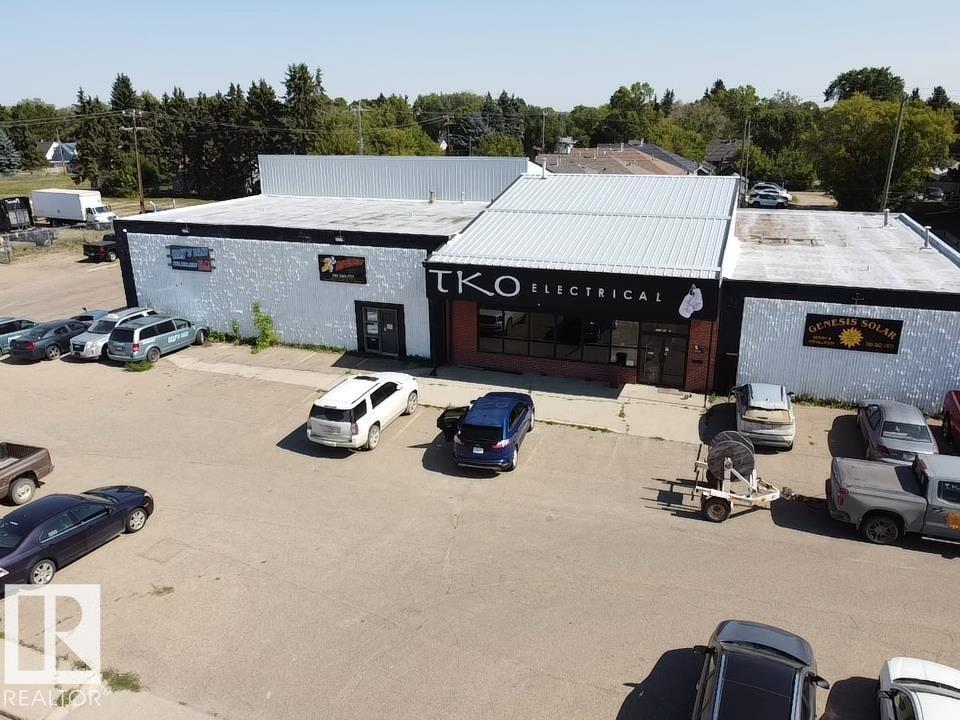 For Sale – 9,100 sq ft multi-bay commercial building in high-visibility location on a truck route in Wetaskiwin, AB. Features 4 independent bays: Bay #1 (4,760 sq ft) with retail, 4 offices, 12' ceilings, 10'x14' OHD, and 2pc bath; Bay #2 (1,920 sq ft) and Bay #3 (1,920 sq ft) with 16' ceilings, 20'x16' OHDs, radiant heat, offices, storage, and bathrooms; Bay #4 (486 sq ft) finished office space. All bays are self-contained and can be combined via a common area. Current tenants include a heavy-duty truck repair shop, taxi office & repair, fire suppression company, and electrical contractor. All leases are all-inclusive, and tenants are open to short or long-term lease terms. Block construction with ongoing upgrades. Located 35 minutes south of Edmonton, Wetaskiwin offers lower taxes, skilled labor, and strong transportation access. A turnkey investment or owner-user opportunity with income in place. Great Investment Opportunity! (id:6289)