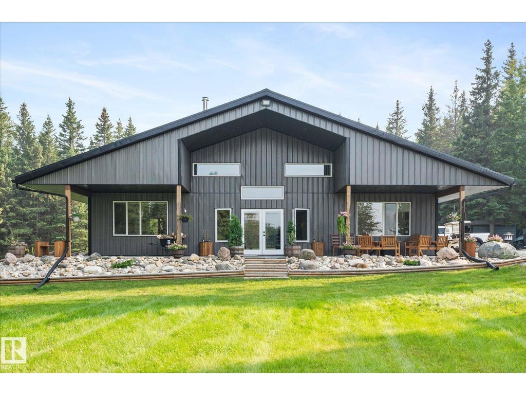 Welcome to this unique property in Lac Ste Anne County, located only 20 minutes to Stony Plain. This property is 39.2 acres of park-like setting with a shop-house nestled down in the trees. The house is a ranch style 2040 sqft bungalow with no basement built on a 6 concrete slab with in-floor heat. Complete with 2 large bedroom including the primary bedroom with 9' ceilings, a large walk in closet & 4p ensuite with huge shower. The kitchen has quartz counter tops, tons of white cabinets, SS appliances & large island great for entertaining. The front room is open concept with 22' vaulted ceiling, large windows & a wood-burning fireplace. 2 more bathrooms compete the home, one with quick access to the attached 40x60 shop with 16' ceilings (2x14' doors), the concrete for the shop pad is 8 thick & has a floor drain. There are 2 radiant heaters in the shop. Outside are 2 seacans, a large garden shed, raised garden beds & in-ground garden area. There is a wrap a round deck around 3 of the sides of the house. (id:6289)