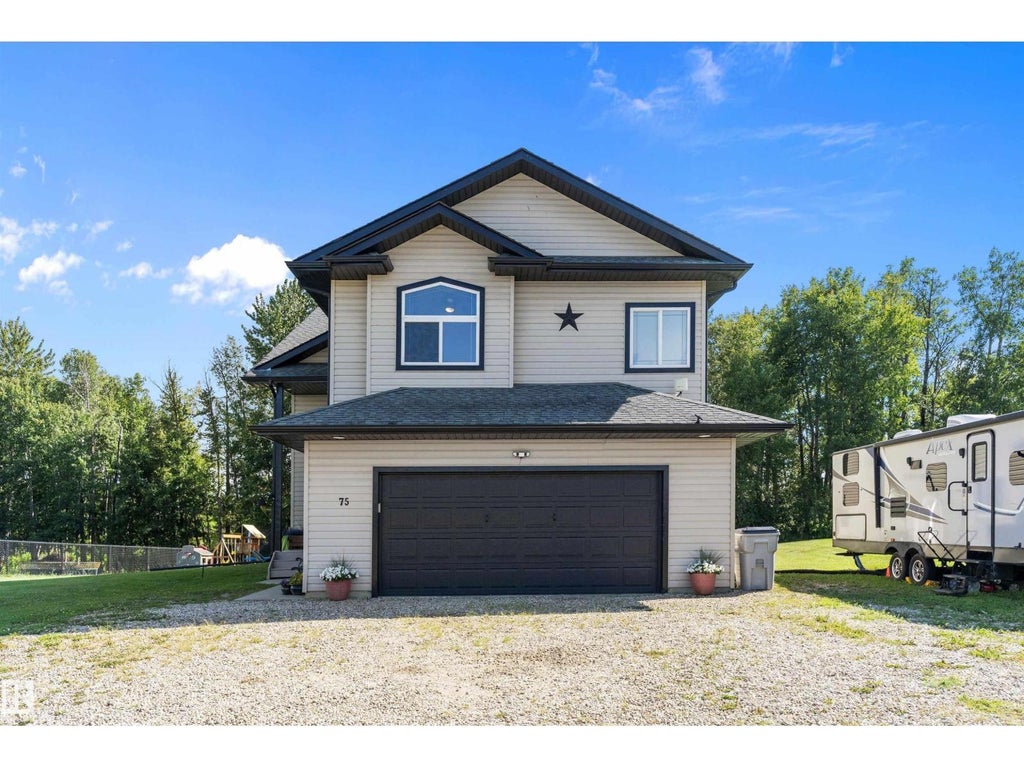10/10 fenced acreage! Here is your chance to move into Willow Peak Park in the village of Spring Lake. This walk out Bi-level offers 3 bedrooms and 2 bathrooms. Main floor offers open concept with abundance of light. Beautiful oak kitchen with lots of storage, island, peninsula and walk in pantry and new appliances. Cozy living room with gas fireplace and vaulted ceiling. The main floor offers 2 bedrooms and a 4 piece bathroom. Just a few steps up will lead you to the large primary bedroom with a huge walk in closet and 4 piece bath with corner tub. The basement has large family room and laundry room. Additional basement space for a bedroom and bathroom. Two tiered deck allows for great entertaining in this private yard. Lots to explore on this beautiful property,walk down to the trees for a separate secluded fire pit area.Double attached garage with ample parking for vehicles and RV'S. Upgrades include new hot water tank (2023) Garage door(2024) and fence(2024) close to Blueberry school and Stony Plain (id:6289)