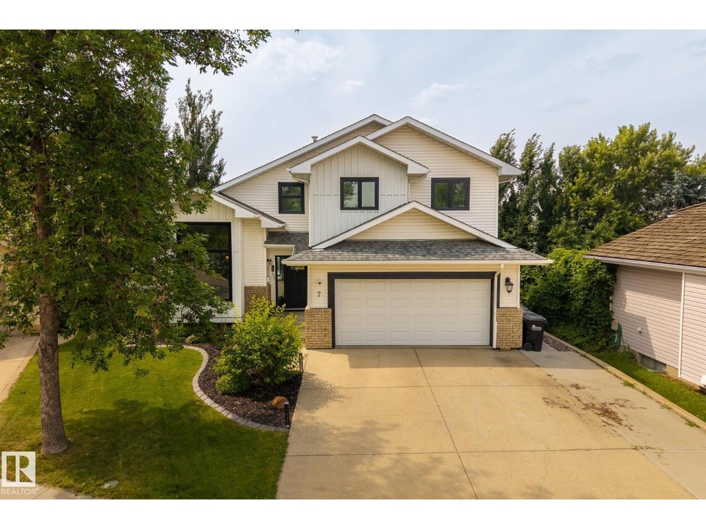 Welcome to this Charlton Heights gem located on a quiet cul-de-sac! Upgrades include, NEW Black triple pane windows, attic insulation, light fixtures, paint, Hardie Board siding, stone, roof, GEM stone lighting, central A/C, extended driveway, hot water tank, PLUMBING, & more. This Home Features 5 bedrooms, 3 baths, 24L x 20W double OVERSIZED/HEATED garage, open concept living, vaulted ceilings, large front formal sitting & dining room, spacious kitchen offering plenty of cabinets, SS appliances & granite island overlooking the dining area w/ patio doors leading to the HUGE PIE SHAPED BACKYARD that is fully fenced & landscaped with a gas BBQ line! Off the kitchen is a spacious family room with a CEILING HIGH WOOD FIREPLACE, in addition to a Bedroom & laundry room to complete the main floor. Upstairs features 3 large bedrooms, HUGE Master suite w/ double closets & 4 pc ensuite w/ soaker tub, 2 additional bedrooms & 4pc bath.The fully developed basement has a rec room, 5th bed & lots of space for storage! (id:6289)