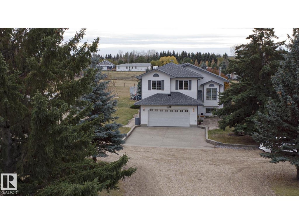 Beautifully maintained & upgraded 1400 sqft + finished basement bi level style home with bonus floor area, featuring 3+2 bedrooms & 3 bathrooms, located on 3.90 beautifully landscaped acres in Sturgeon Valley Estates. Main floor features a large living room, dining room piano window & patio doors with access to sun deck & renovated kitchen with granite counter tops, moveable island, pantry & stainless steel appliances. Primary bedroom features barn doors, walk in closet & 3 piece ensuite. Bedrooms 2 & 3 & the upgraded main bathroom are located on bonus/upper level. Fully finished basement features a family room with gas fireplace, bedrooms 4 & 5, upgraded bathroom & large laundry room. Oversized heated garage is 26'x22'. Outdoors you'll find a multi level deck (dura decking), new hot tub (2023), 2 sheds, play structure, fenced horse pen with lean to, firepit, above ground pool, RV parking, plenty of trees & perennials. Commune with nature in this peaceful and private country residence! (id:6289)
