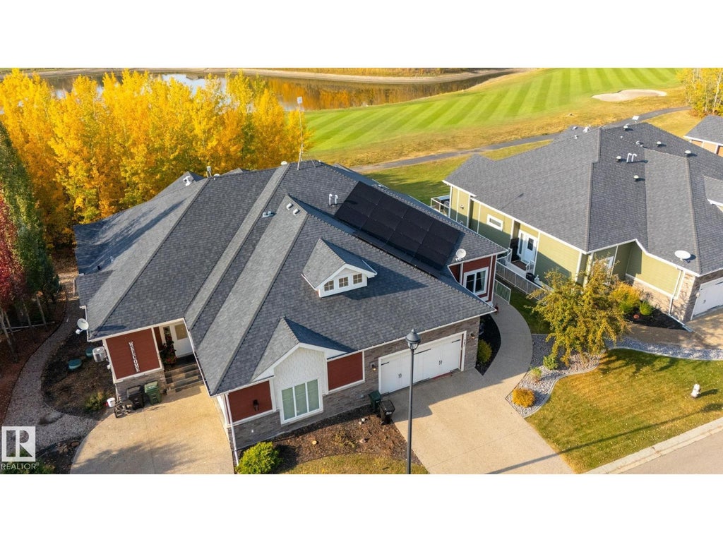 Welcome to Villas on the Green, backing onto the prestigious Northern Bear Golf Course. This executive half-duplex bungalow is boasting almost 3400 square feet including a walkout basement offering elegance and comfort throughout. The main floor features engineered hardwood floors, 11' ceilings on main floor with vaulted ceilings in the living room, and a modern kitchen with granite countertops and stainless steel appliances. The bright dining and living room with gas fireplace open to a private deck with stunning views of the course and pond. The primary suite boasts a spa-like 5-piece ensuite, with a 2nd bedroom, full bathroom, laundry, and attached double garage completing the level. The walkout basement has 9' ceilings and adds a rec room, wet bar, media/fitness room, guest bedroom, and full bath. With central A/C and unbeatable golf course living, this property blends executive style with serene surroundings. To complete this green living there is also 7.38 KW of SOLAR PANELS on the roof! (id:6289)