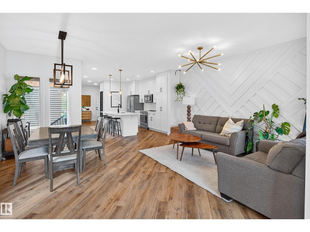 Experience modern elegance in this meticulously maintained 1,800 sq ft home. Spacious and thoughtfully designed, it offers an open-concept layout with sleek quartz counters, a stylish backsplash, and a large island perfect for hosting. Oversized patio doors create seamless indoor-outdoor living, opening to a low-maintenance yard ideal for relaxing or entertaining. At the rear, enjoy direct access to the basement, a double attached garage, and a convenient two-piece powder room. Upstairs showcases a versatile bonus room, laundry area, two additional bedrooms, and a generous primary suite with dual sinks and a walk-in closet. Perfectly located, just a 2-minute walk to Joan Carr School and minutes from shops, dining, daycare, and over 19 km of scenic trails. Central A/C keeps you cool all summer, and this move-in-ready home offers the perfect blend of modern comfort, convenience, and community for a vibrant lifestyle. (id:6289)