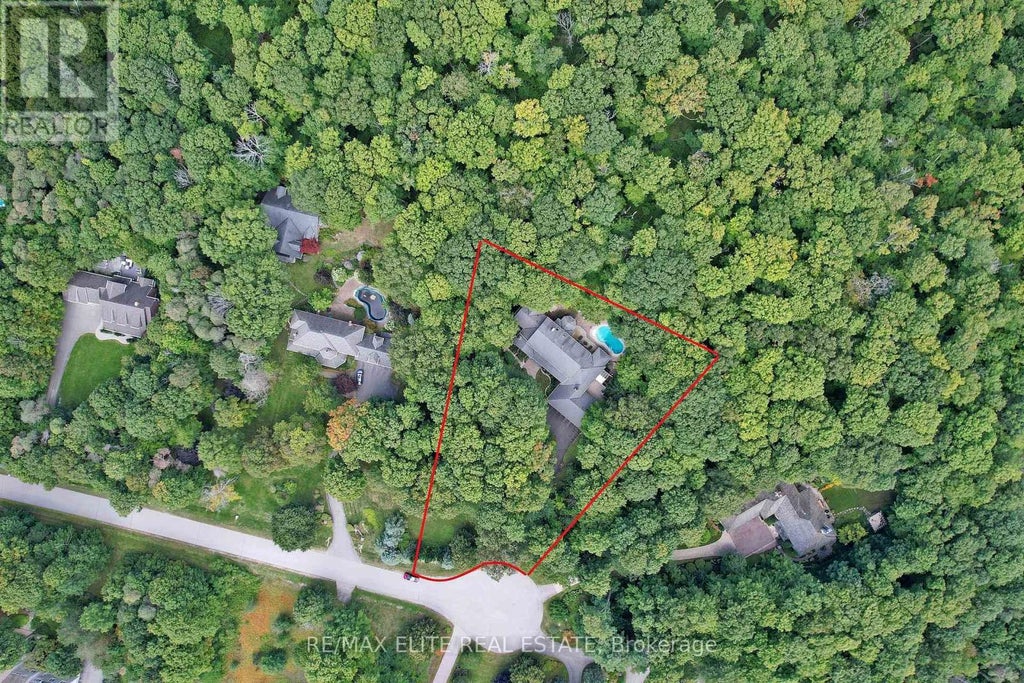 An exceptional opportunity for large families or discerning buyers seeking a home with significant potential to modernize and enhance value. This distinguished estate is located in the exclusive Trail of the Woods community, set on a rare 1.58-acre pie-shaped lot at the end of a private cul-de-sac, backing onto a protected hardwood forest for unmatched privacy. Offering nearly 7,000 square feet of finished living space, the residence was designed to accommodate both grand entertaining and comfortable family living. A 4-car garage, multiple entrances, and a resort-style inground pool further elevate the homes versatility, making it ideal for multi-generational living or an in-law suite. The interior layout provides an excellent foundation for customization, featuring a chefs kitchen with large island, custom cabinetry, built-in desk, and a sunlit breakfast area with walkout to the outdoors. Principal rooms include a dining room with forest views, a family room with wood-burning fireplace, and a formal living room highlighted by a coffered ceiling, gas fireplace, and expansive windows. The main-floor primary suite serves as a private retreat, complete with gas fireplace, walk-in closet, and spa-like ensuite, with direct access to a wellness wing offering a sauna, hot tub room, and additional bath. Upstairs are four generously sized bedrooms and two full baths, including a versatile suite with sitting area and ensuite bath. The finished lower level extends the living space with a recreation room, wet bar, gym, full bath, abundant storage, and direct garage access. Ideally located minutes from Highways 404 and 407, Bloomington GO Station, top-rated schools, golf courses, shopping, and fine dining. This rare property presents an outstanding opportunity to renovate and create a bespoke residence, combining privacy, luxury, and convenience just 30 minutes from downtown Toronto. (id:6289)