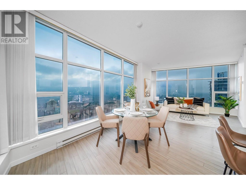 Welcome to the prestigious Chancellor, a landmark development by Polygon in the heart of Metrotown. This Northeast corner unit boasts stunning panoramic views of the North Shore Mountains, Deer Lake, and the Fraser River, offering a peaceful retreat above the city. Thoughtfully designed with high-end stainless steel appliances, quartz countertops, and a modern open-concept layout, this home perfectly blends elegance and functionality. Permanent A/C installation is permitted with prior Strata approval according to the Bylaws. Just steps from Metrotown Mall, Bonsor Recreation Complex, SkyTrain, and diverse dining and entertainment options, it delivers unmatched urban convenience and luxury. (id:6289)