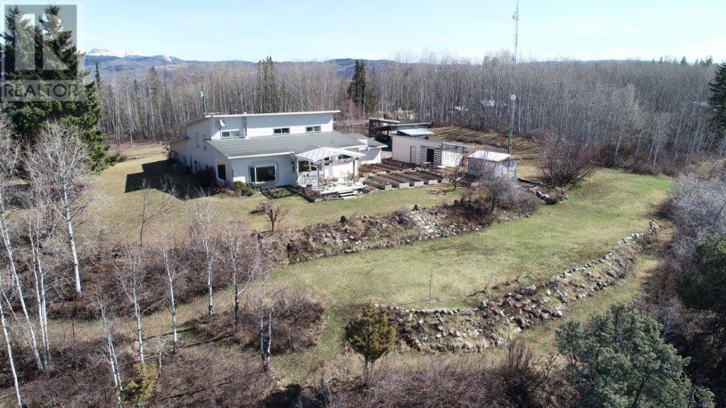 Beautiful views from this 12 acre property located only minutes from Telkwa. Custom and well built 4 bedroom, 2 bath home with vaulted ceilings throughout and open main living area. Sunken living room with a cozy fireplace. Primary suite features walk-in closet and doors leading to upper deck. This home also features a large attached heated workshop, 24' x 24' carport, in-floor heat, and paved driveway. Established garden area with mature berry bushes and trees. Multiple walking trails. 26' x 13' storage building, greenhouse, and various other outbuildings. Very private property with great sun exposure. (id:6289)