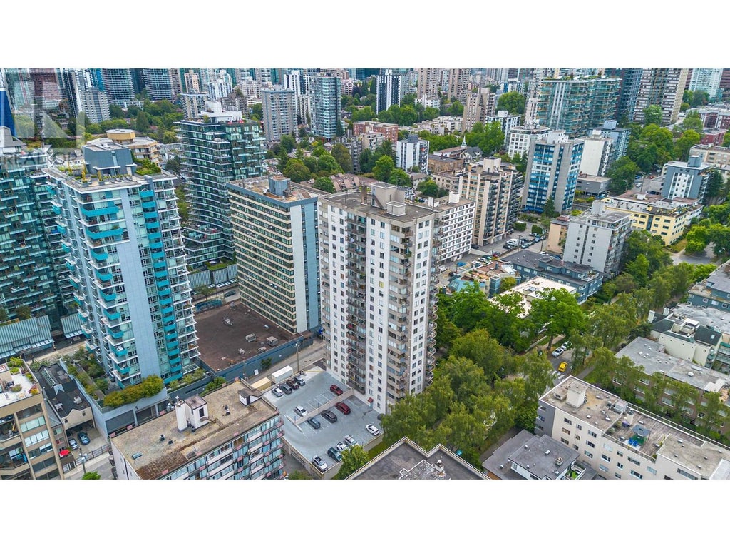 PANORAMIC CITY & ENGLISH BAY VIEWS | WEST END. Elevated on the 17th floor of Surfcrest, this smartly reconfigured 1-bedroom maximizes every inch. Floor-to-ceiling glass frames the vista and slides onto a large covered balcony - sunsets, seawall, fireworks. Suite 1707 invites turnkey living or effortless rental income. Strata fee bundles heat, hot water + property taxes. Concrete building offers an indoor pool, sauna, and attentive live-in caretakers. Steps to sand, seawall, Davie cafés & transit. Rentals OK (sorry, no pets). A true West End classic, move-in ready. (id:6289)