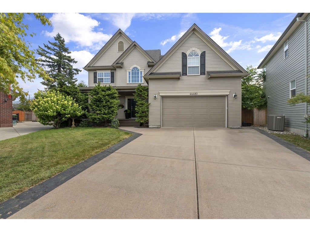 Sought after Petersburg area is known for its wide meandering streets, large lots, proximity to top notch elementary school & walking distance to the world class Vedder River & Rotary Trail. Home is custom built, w/grand entry,9 ft ceilings, lrg open spaces, 2 sided stone gas f/p, kitchen includes ss/appl, pantry & a big eating bar. French doors lead to lrg private yard w/2 patios, back gate allows for RV parking. Upstairs boasts 4 big bdrms all with wi/closets, office space & laundry The master is VERY impressive, ample room for king bed, huge ensuite lrg wi/shower, soaker tub & a GYM! 1270 sq ft unfinished basement w/separate entrance & has endless opportunities, plumbed for a 4piece bath, kitchen, room for 1 or 2 bedrm suite & storage. Amazing family neighbourhood! (id:6289)