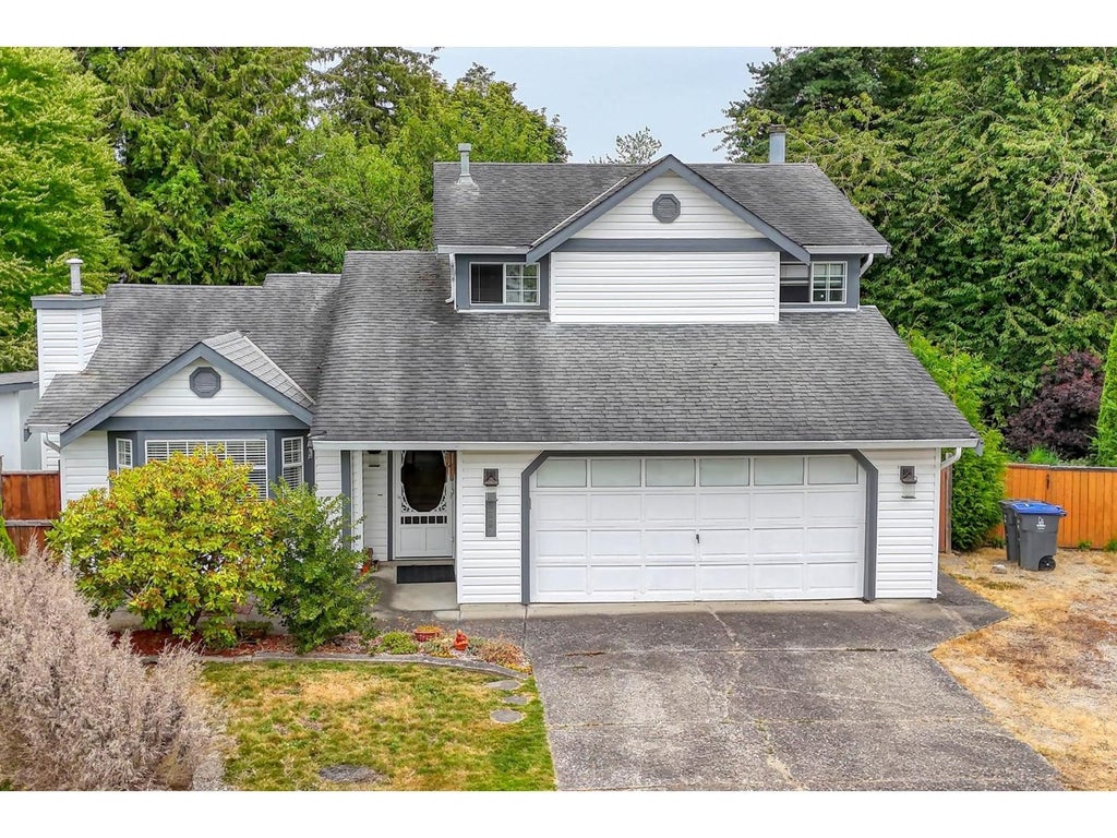 Excellent Cloverdale cul-de-sac location! Split level home, meticulously maintained and situated on an oversized 9657 SQFT LOT. Great layout with a vaulted living room ceiling. Large family rooms which are great for entertaining! Cozy family room looks out onto the private fenced backyard with garden beds, concrete patio for BBQ's plus an in-ground sprinkler system. Upstairs you will find 3 bedrooms, the large primary fits a king size bed and en-suite with in-floor radiant heating. Two additional bedrooms share a 4-piece bath. A/C with heat pump and 2 fireplaces. Spacious double garage with loads of additional parking - perfect for RVs or hobbies. Close to schools, transit, and shopping, this is a perfect family retreat. (id:6289)