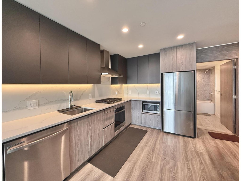 Welcome to the Iconic Grand on King George! With Surrey Central set for exponential growth through the proposed UBC campus and Surrey-Langley SkyTrain extension, this 2-bedroom open-concept home is a prime opportunity. Enjoy a spacious living area and terrace with panoramic mountain, city, and valley views. Just a 4-minute walk to Gateway SkyTrain for easy access to Downtown Vancouver and Metro cities. Features include A/C, gas cooktops, full-size Samsung appliances, and 24-hour concierge. Residents enjoy 23,000 sq. ft. of amenities! fitness center, social lounges, and landscaped outdoor spaces. Luxury living in the heart of Surrey Central! (id:6289)