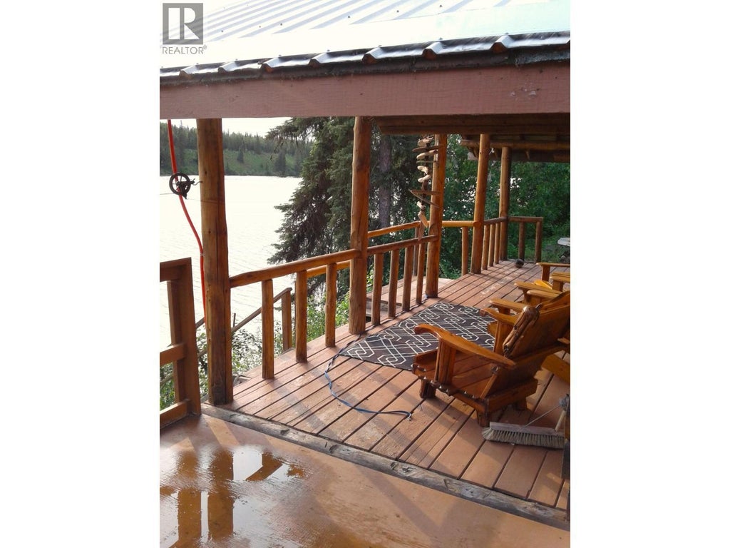 A remote, yet accessible jewel of the Cariboo. Truly unique, off-grid home; with 186 ft. of lakefront that is set up for 4-season living. This beautiful, full of character 2 bed, 1 bath log home has it all, so if you want to get away from the everyday hustle and bustle this is your chance. The property feat. main house, workshop with guest a guest suite above for those extended visits from family & friends. Two storage sheds, greenhouse, garden space and gazebo all fit nicely on the 0.68-acre lot. large sundeck to relax, have a happy hour listening to the Loons singing across the lake. Solar panels and generator serve as backup, with propane fridge, stove, W/D and 40 gal HWT. This is your chance to own an affordable, quality, wilderness cabin. (id:6289)
