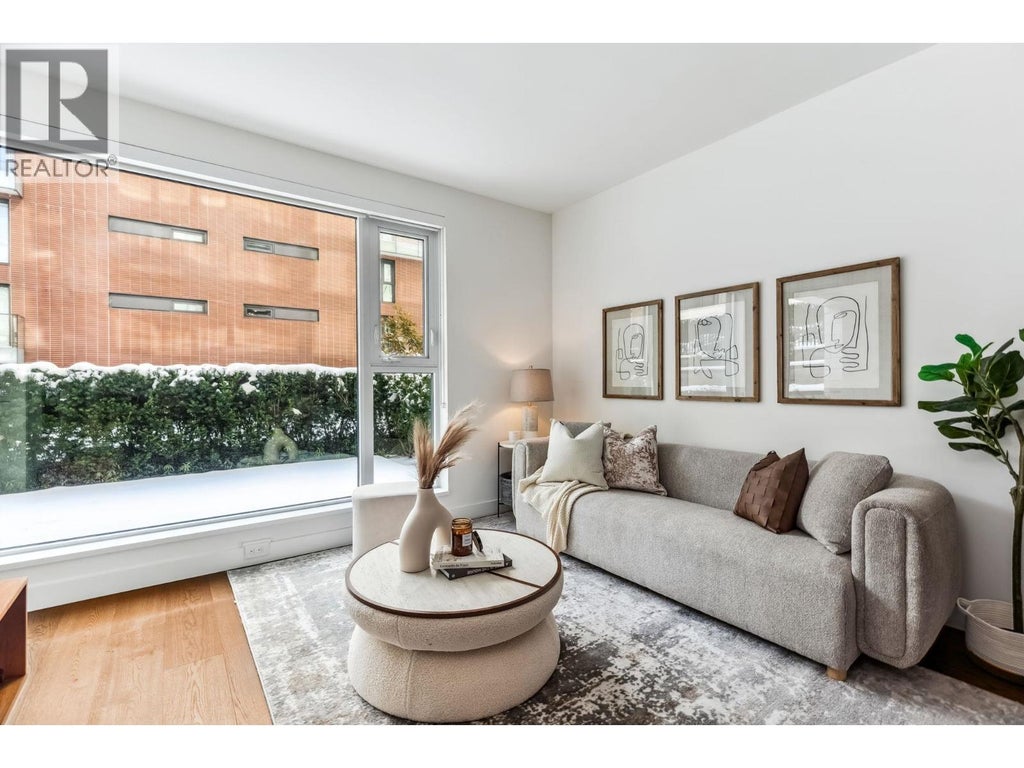 Welcome to luxury living at South Granville Shannon Wall Centre in Adera House! This 1-bed+den unit offers nearly 740 square ft of living space, a spacious den,+ an impressive 270 square ft private patio.Designed with a dark (Graphite & Wenge)color scheme by BYU Design,it features air conditioning,ultra-wide plank engineered oak flooring, European cabinetry, and quartz countertops.High-end appliances include a Thermador dishwasher and Liebherr fridge.The unit comes with 1 large parking space and 1 large storage locker. Enjoy world-class amenities on a 10-acre estate,including beautifully manicured gardens,a fitness centre, a party room,and a heated outdoor lap pool. Located near Maple Grove Elementary,Magee Secondary. Central location close to everything.OH Oct 4/5(Sat/Sun) 2-4pm; Offer Oct 7 12pm (id:6289)