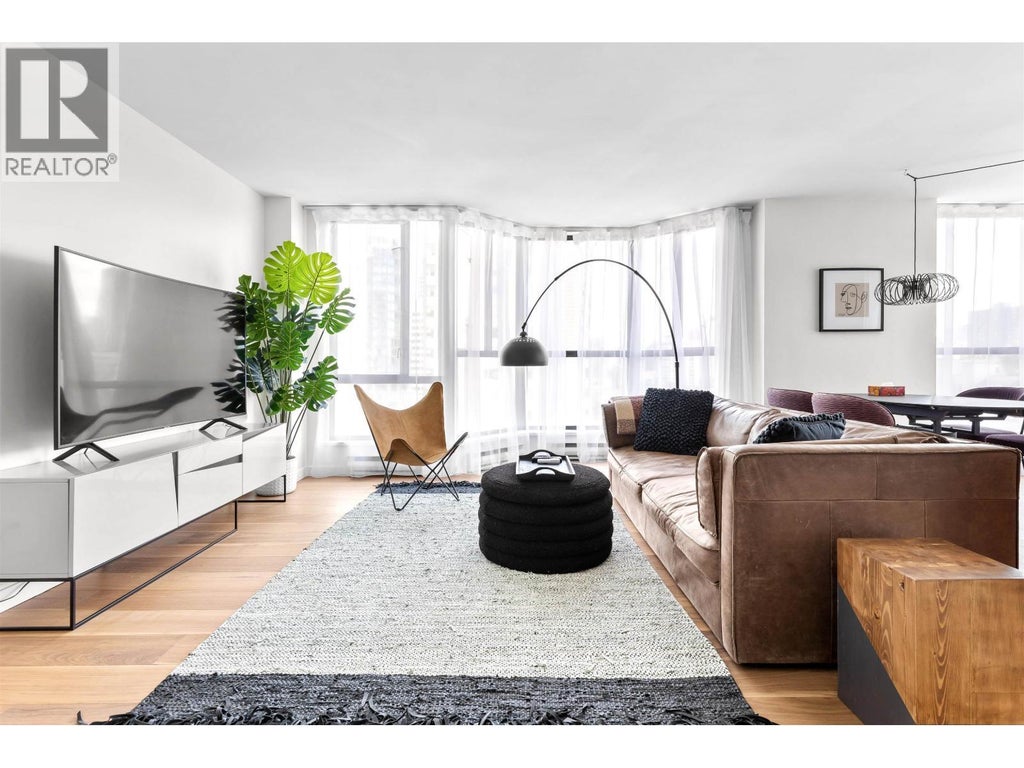 Step into timeless elegance in this fully renovated 2 bed/2 bath corner home in Vancouver´s prestigious West End. Perched on the 9th floor of Jervis Court, this 1,000+ sq. ft. residence boasts stunning city views and abundant natural light. Completely redesigned in 2022, it features a custom Italian kitchen with premium cabinetry and integrated SMEG appliances, hardwood floors, and luxurious Italian porcelain bathrooms. The spacious primary suite offers ample closets and a refined ensuite. Additional perks include: in-suite laundry, 2 secured parking stalls, and a storage locker. Just steps to Robson, Coal Harbour, shopping, and dining - this is a rare turn-key designer home in one of Vancouver´s most coveted neighborhoods. (id:6289)
