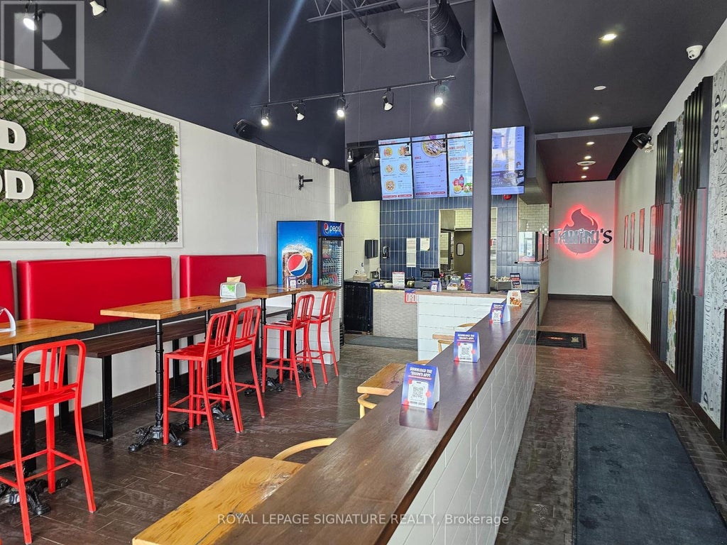 Excellent turnkey QSR opportunity in Orillia, located just off Highway 12 in a busy commercial plaza with strong co-tenants. Currently operating as a Shawarma franchise, this space is available for rebranding to suit a variety of concepts and cuisines. The well-designed 1,631 sq ft layout is optimized for low labour costs, making it ideal for streamlined operations. Key features include an 8-foot commercial hood and a functional kitchen setup ready for immediate use. Take advantage of a competitive gross rent of $6,700 (including TMI) with a favourable lease term of 4 + 5 + 5 years. This high-traffic plaza offers excellent visibility and ample parking, making it a prime location for your next business.Please do not go direct or speak to staff or ownership. (id:6289)