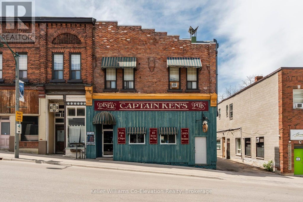A rare chance to own a versatile, income-generating property in the heart of Penetanguishene! Home to Captain Ken's Diner & Pub, a beloved local landmark operating since 1976. The main floor features a fully equipped, turnkey restaurant space, known for its high visibility, steady foot traffic, welcoming atmosphere, and loyal customer base. Above the restaurant, the second floor offers two large, 3-bedroom, 1-bath apartments, both currently tenanted providing reliable rental income. Highlighted by a deck/patio off the back unit. With prime Main Street frontage, on-site parking (5-6 cars), and flexible DW zoning, this property is ideal for restaurateurs, investors, or entrepreneurs. Whether you continue its long-standing tradition or bring your own vision, this is a rare chance to own a piece of Penetanguishene's history. Don't miss this incredible opportunity! (id:6289)