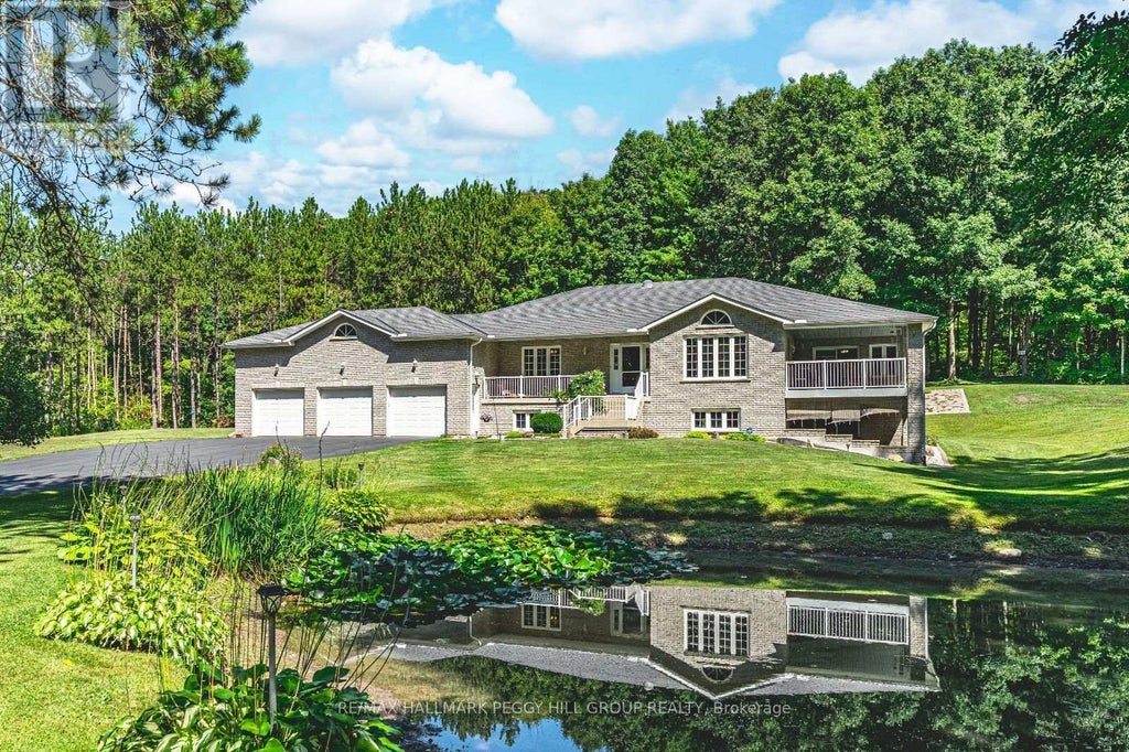 25 ACRE COUNTRY ESTATE WITH PRIVATE TRAILS, SUPERIOR CRAFTSMANSHIP, PREMIUM UPGRADES, & ENDLESS NATURAL BEAUTY! Welcome to an exceptional country estate set on 25 acres with mature forest, gardens, a tranquil pond, and a serene stream, creating a private retreat where year-round beauty and daily wildlife visits await. Offering 1 km of forest trails right on your property, this haven also places you minutes from golf, spas, provincial parks, skiing, snowmobile routes, boat launches, and beaches - with just 20 minutes to Orillia or 30 minutes to Barrie for added convenience. This home boasts over 4,500 sq ft of finished living space, custom-built with superior craftsmanship, energy efficiency, and pride of ownership throughout. Expansive outdoor living includes two porches, a sun-filled entertaining deck, a fire pit, and open-air gathering spaces, while the triple car garage with auto openers and an oversized driveway provides abundant parking and storage space. Inside, a wall of windows in the living room frames pond and garden views, flowing into a dining room and a bright family room with a porch walkout. A cozy den adds main floor versatility, while the gourmet kitchen impresses with a pantry, a built-in oven and countertop range, and a walkout to a sunny deck. A full 4-piece bath complements three bedrooms, including a luxurious primary suite with a walk-in closet and a 3-piece ensuite. The finished basement offers a bedroom, a den with a patio walkout, a large rec room with a wood stove, a workshop, home gym, and full bath, creating excellent in-law suite potential. An included hot tub and pool table add everyday leisure, while upgrades such as an owned water heater, water purification system, durable lifetime shingles, and enhanced attic insulation ensure lasting peace of mind. This is more than a #HomeToStay - its a rare retreat surrounded by natural beauty, offering unparalleled space, lifestyle and elegance ready to be treasured for years to come. (id:6289)